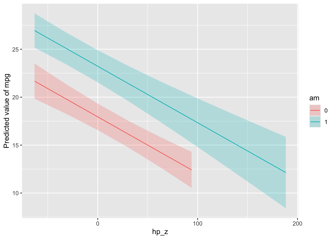 lm2 <- lm(mpg ~ hp_z + am, data = mtcars)