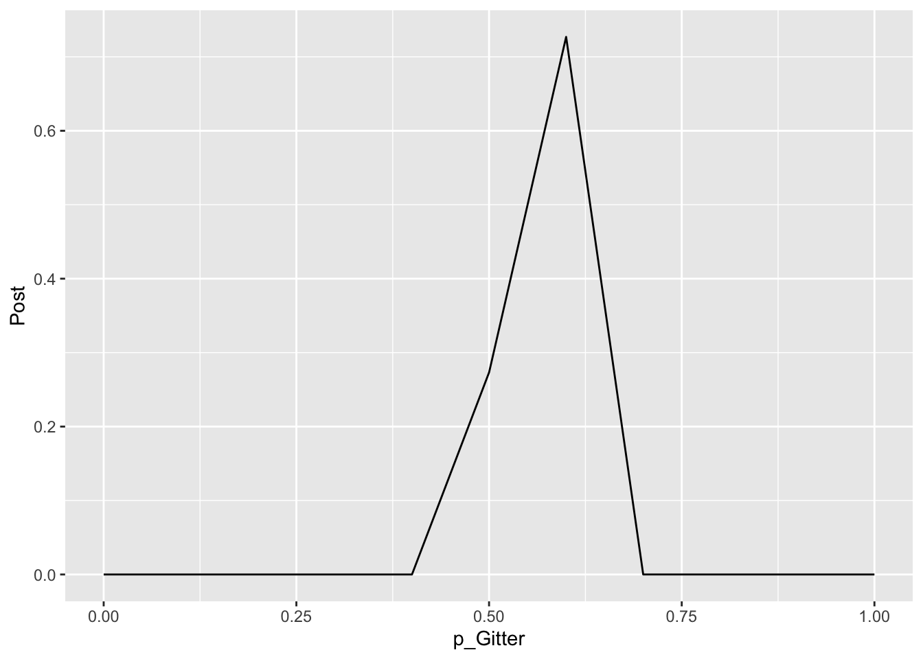 Post = unstd_Post / sum(unstd_Post)) | p_Gitter | Priori | Likelihood | unstd_Post | Post |