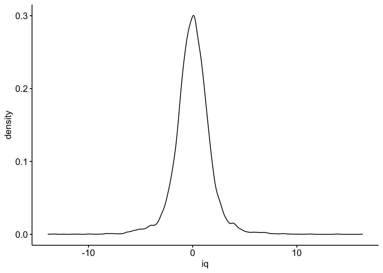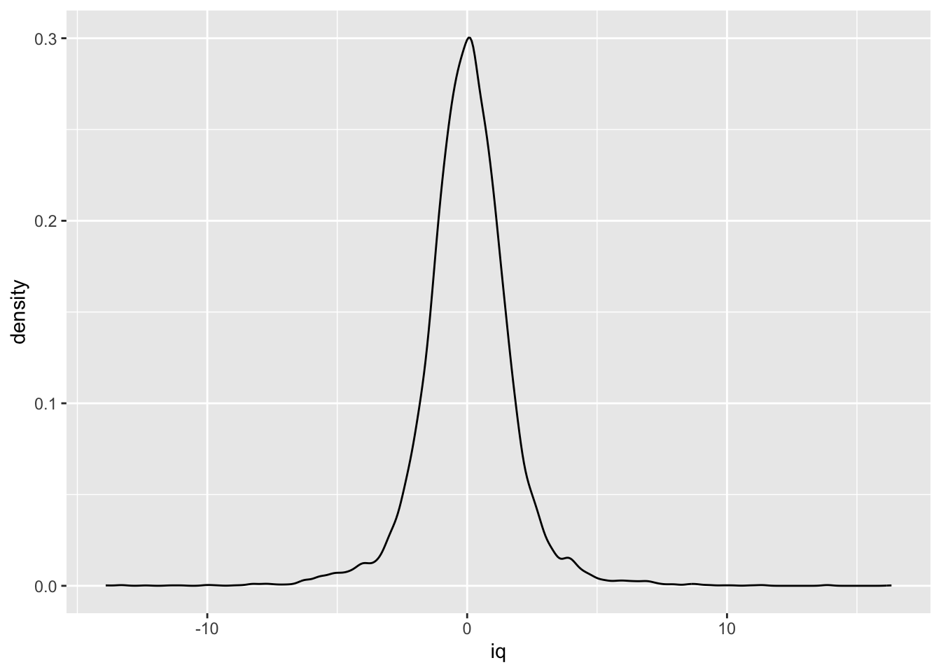 Ah! Nimmt man an, dass Sigma exponentialverteilt ist mit einer Rate von 0.1, dass sind etwa 99 Prozent der Leute nicht mehr als q_iq IQ-Punkte vom Mittelwert \(\mu\) entfernt. Das deckt sich mit ihren Informationen aus der Literatur.