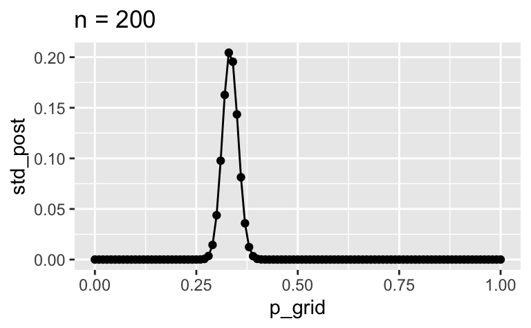Likelihood = dbinom(x = 200, size = 600, prob = p_grid),