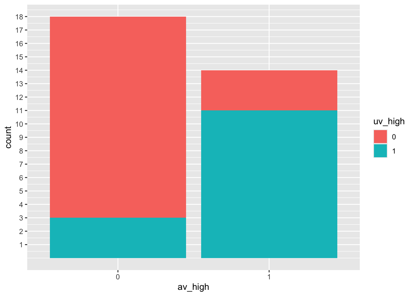 if (min(d3$uv_high) == 1 & max(d3$uv_high) == 1) d3a <- d3a %>% bind_rows(tibble(uv_high = 0, n = 0))