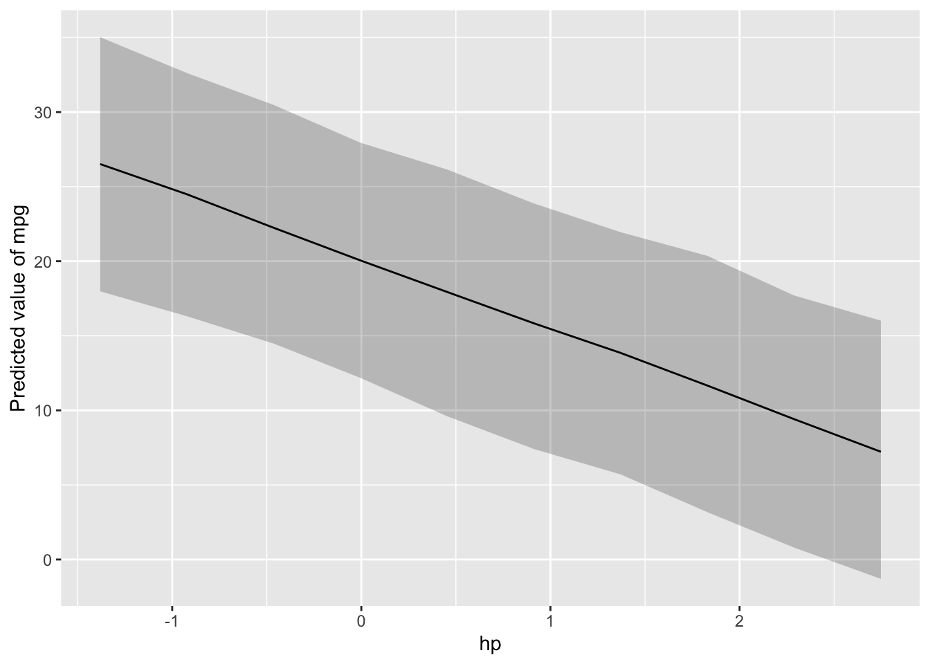 <- estimate_prediction(m2, data = tibble(hp = 0), ci = 0.5)