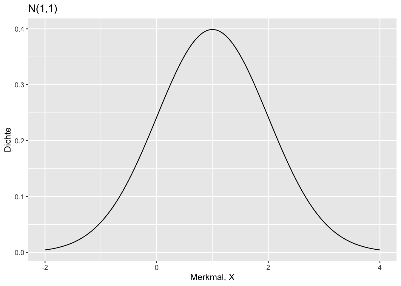 stat_function(fun = dnorm, n = 101, args = list(mean = 1, sd = 1)) +