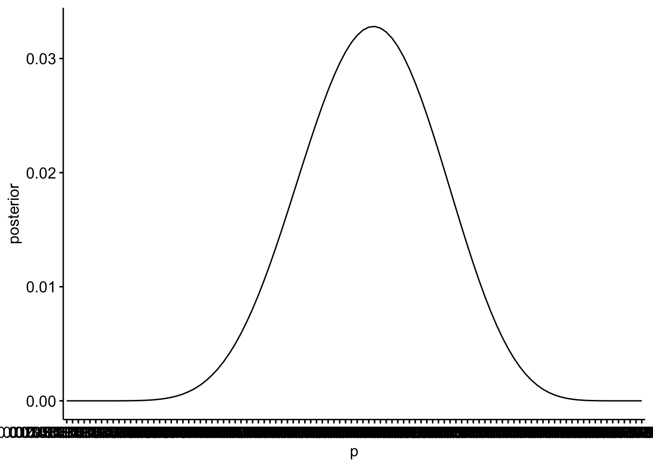 d <- tibble(p = p_grid, posterior = posterior)rethink3m1