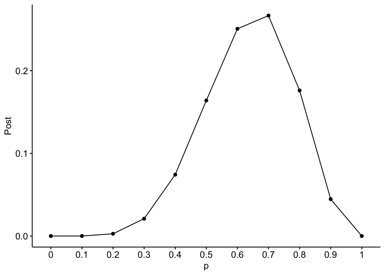 Beziehen Sie sich auf den Standard-Globusversuch mit \(N=9\) Würfen und \(W=6\) Wassertreffern (binomialverteilt), vgl. hier.