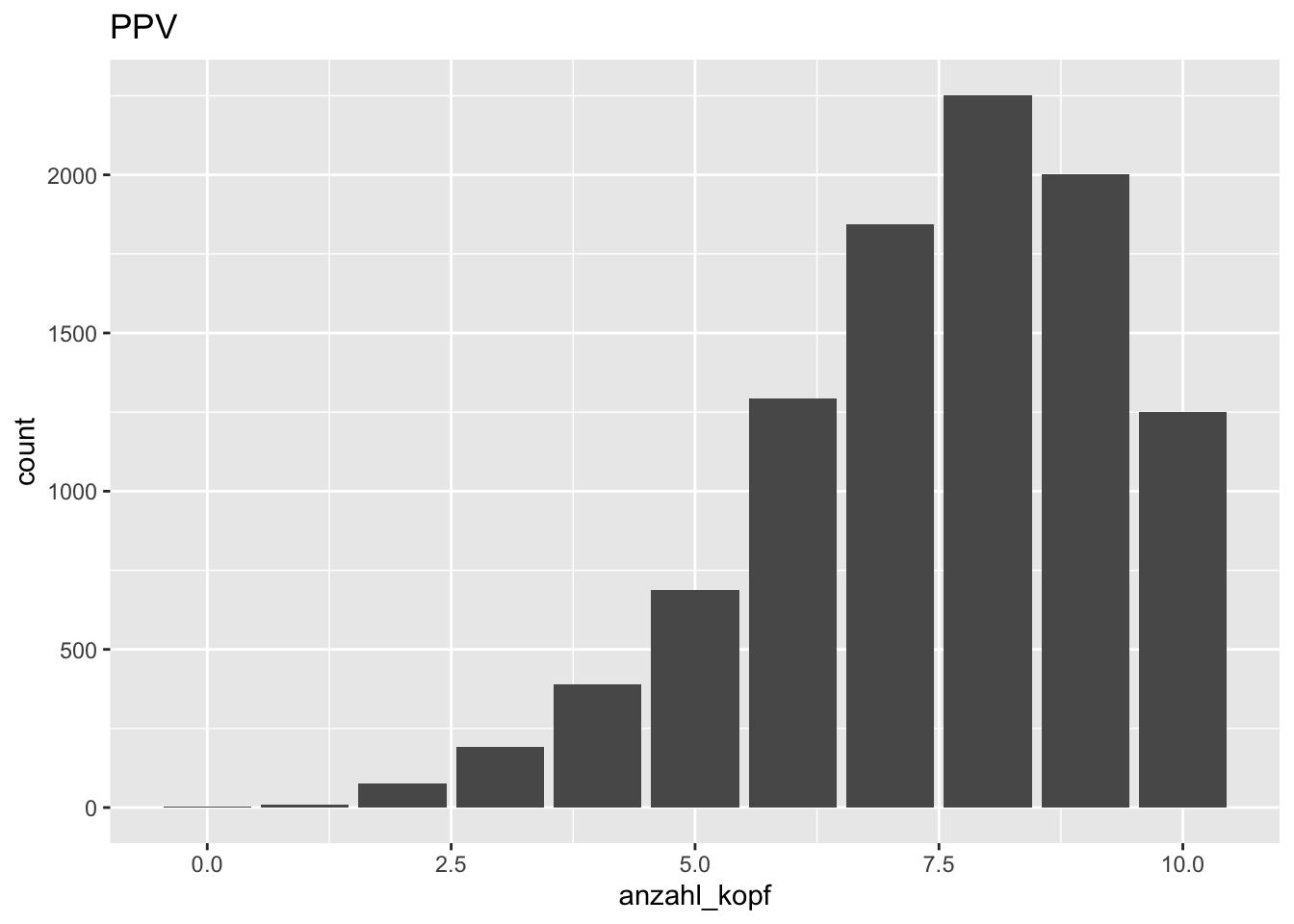 - Berechnen Sie die PPV! Visualisieren Sie sie. Interpretieren Sie die PPV.