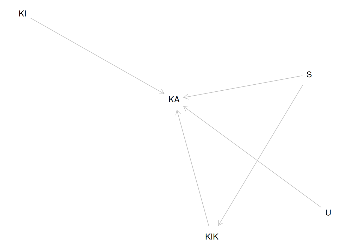 KIK: KI-Kennzeichnung; KA: Kaufabsicht; KI: KI-Generierung, S: Skeptizismus; U: unbekannte Einflüsse