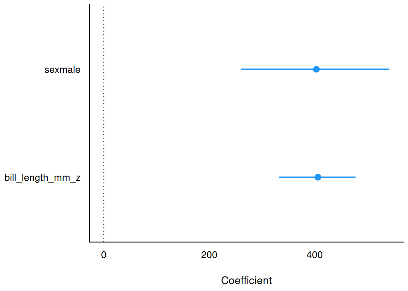 m2 <- stan_glm(body_mass_g ~ sex + bill_length_mm_z, data = penguins_z,