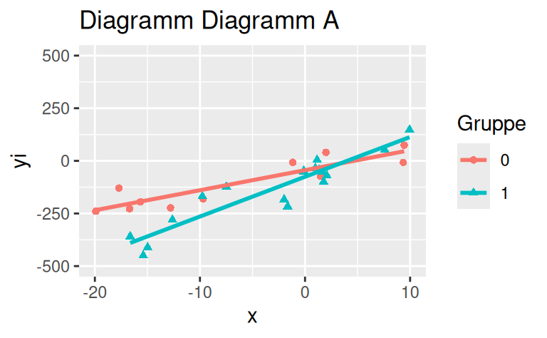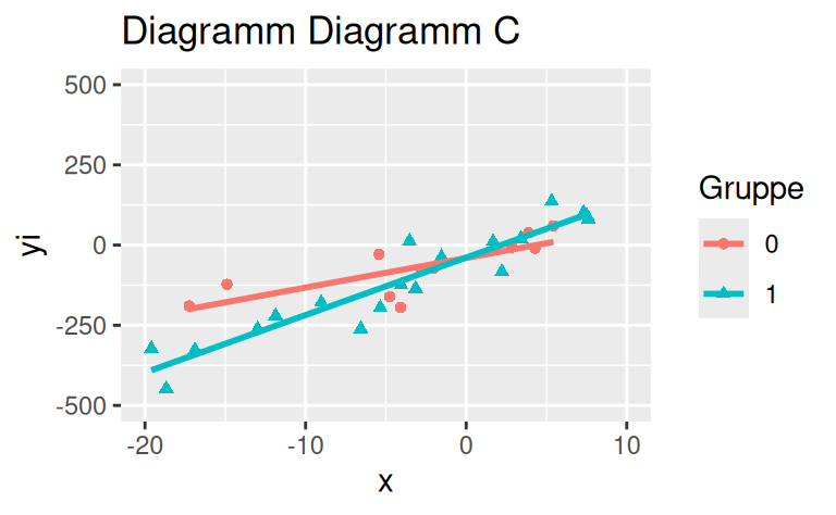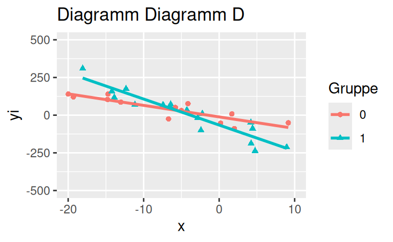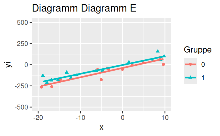 Das Streudiagramm Diagramm E zeigt keinen Interaktionseffekt.
