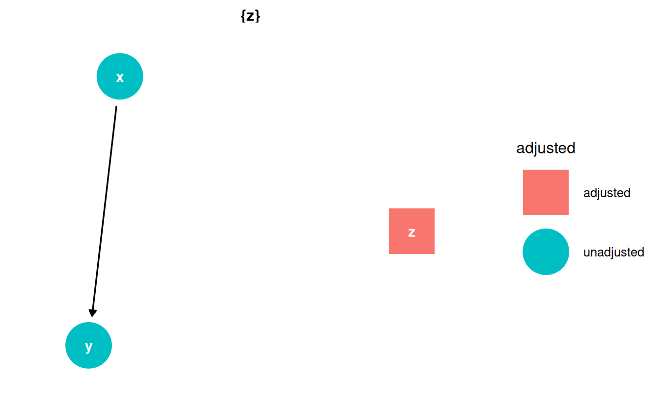 Durch Kontrolle von z wird der kausale Effekt von x auf y identifiziert.