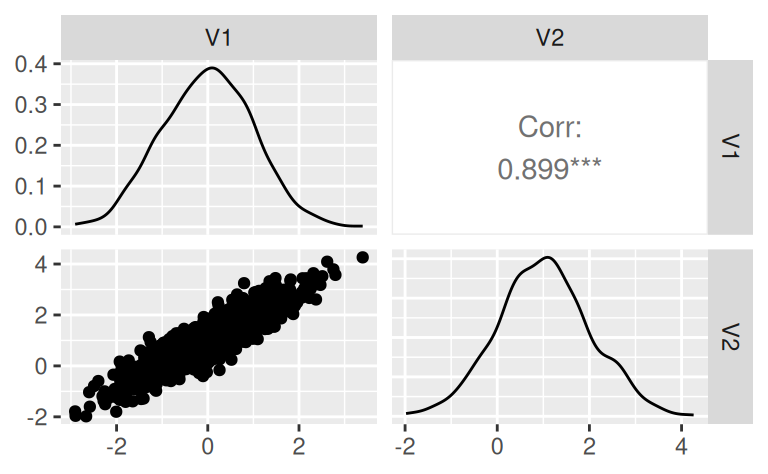Die Korrelation in der zugehörigen (bivariaten) Population beträgt 0.9.