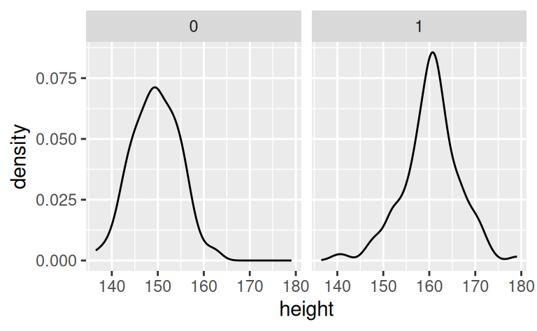 Eine besondere Situation stellt das X- bzw. Y-Chromosom dar, das Gene zum Geschlecht bereitstellt. Das Geschlecht ist ein einzelner Faktor, der (erfahrungsgemäß) einen relativ großen Einfluss auf die Körpergröße hat (in Anbetracht, dass vielleicht Tausende Gene additiv die Größe bestimmen). Insofern ist eine klarere Annäherung an die Normalverteilung zu erwarten, wenn man die Geschlechter einzeln betrachtet.
