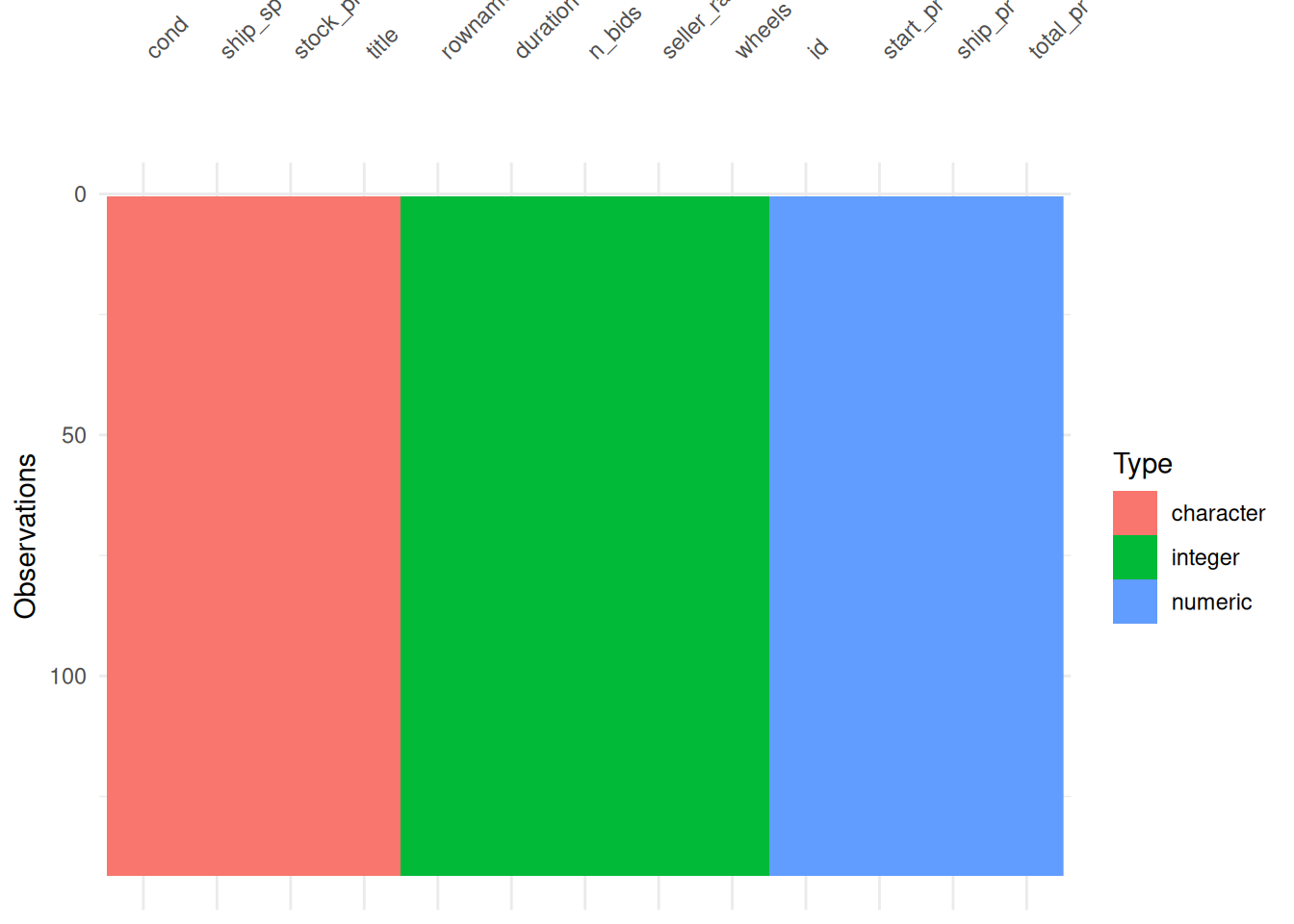 summarise(across(everything(), ~ sum(is.na(.x))))| rownames | id | duration | n_bids | cond | start_pr | ship_pr | total_pr | ship_sp | seller_rate | stock_photo | wheels | title |