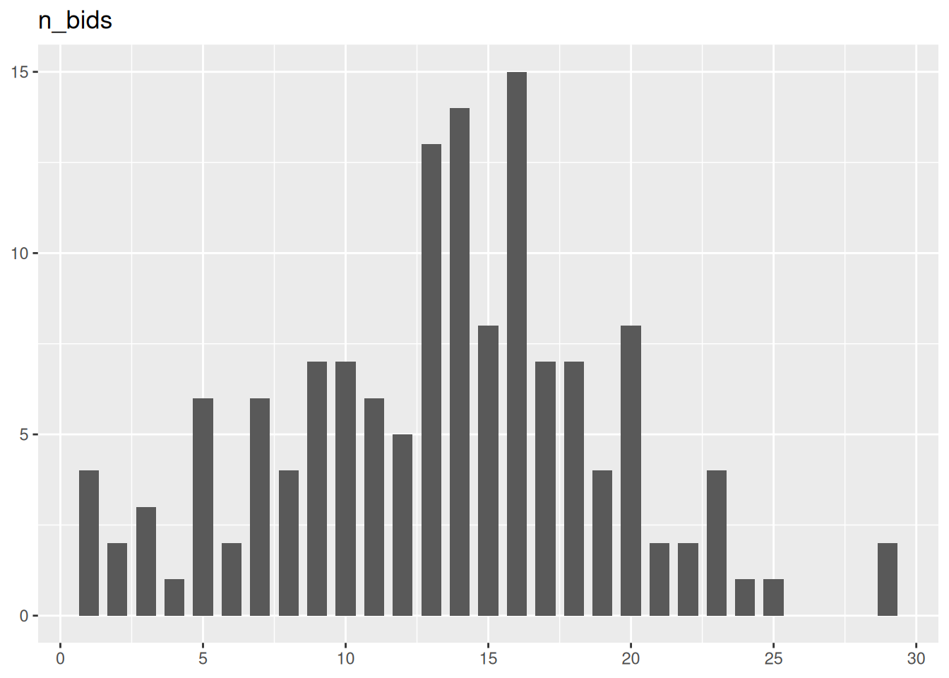 | n_bids | 13.38 | 5.76 | 7.50 | 1.00 | 29.00 | -0.07 | -0.03 | 141 | 0 |