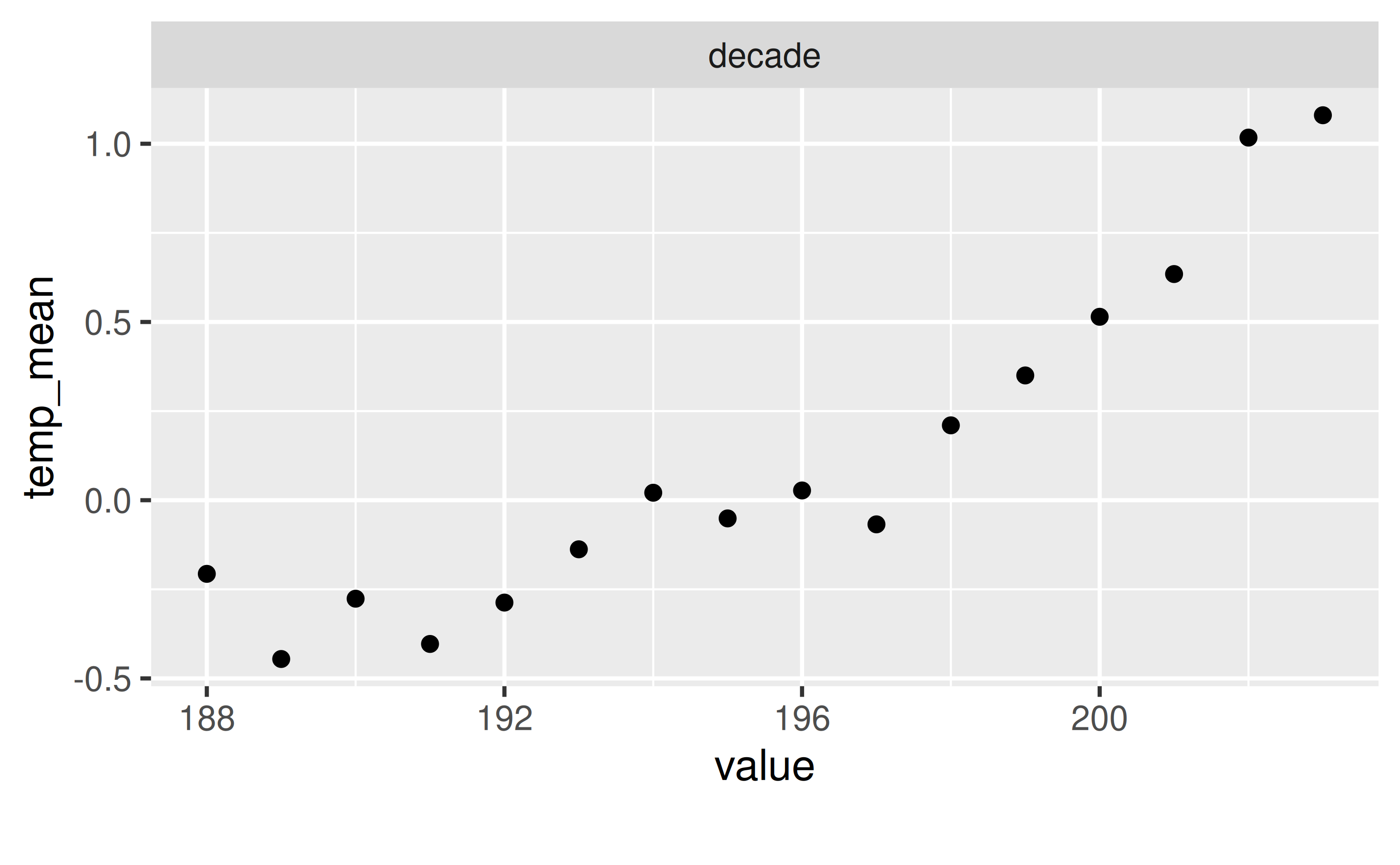 mutate(decade = round(Year/10))Das ist ein möglicher Weg, um aus einer Jahreszahl die Dekade zu berechnen.