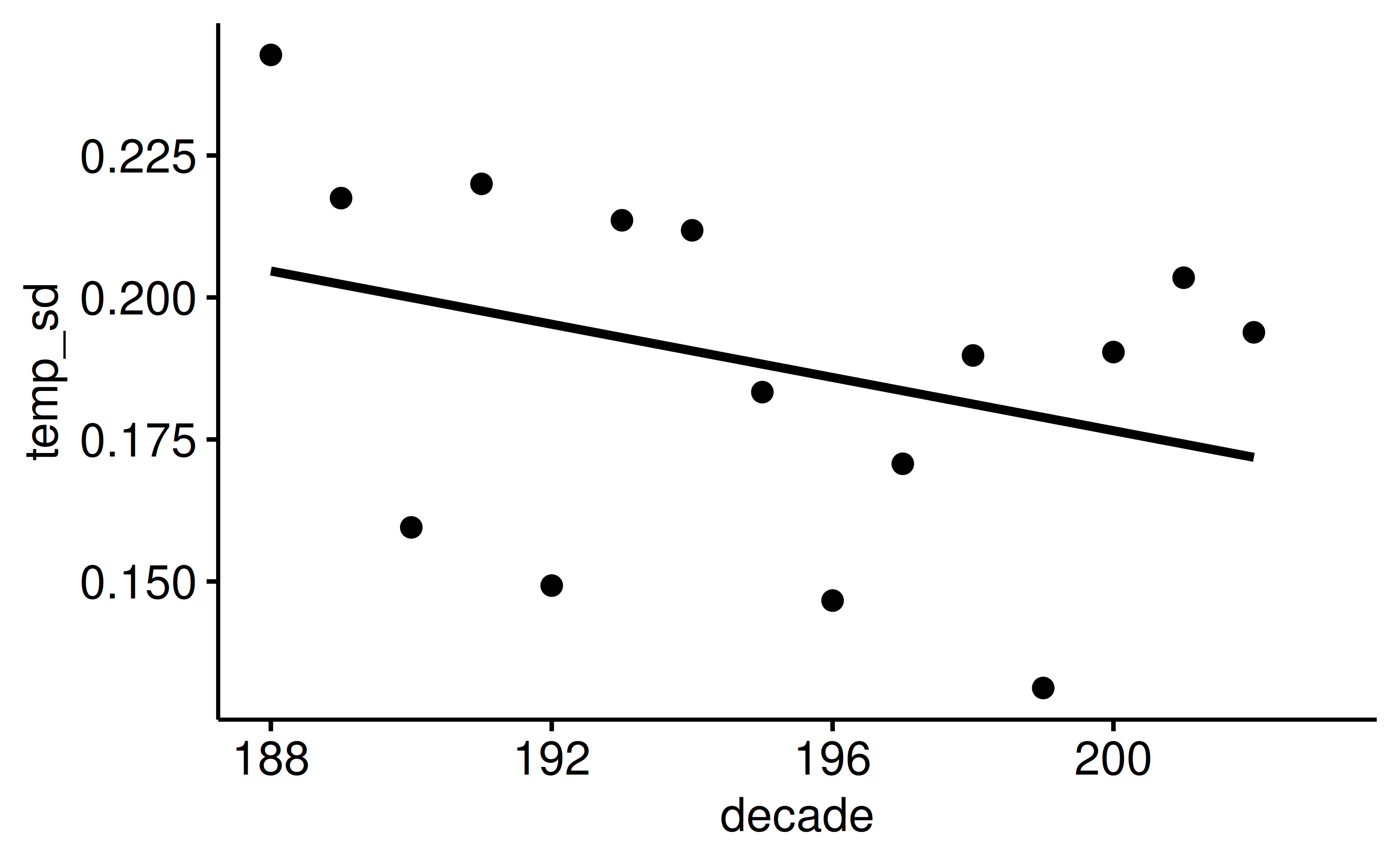 ggscatter(d_summarized, x = "decade", y = "temp_sd", add = "reg.line")
