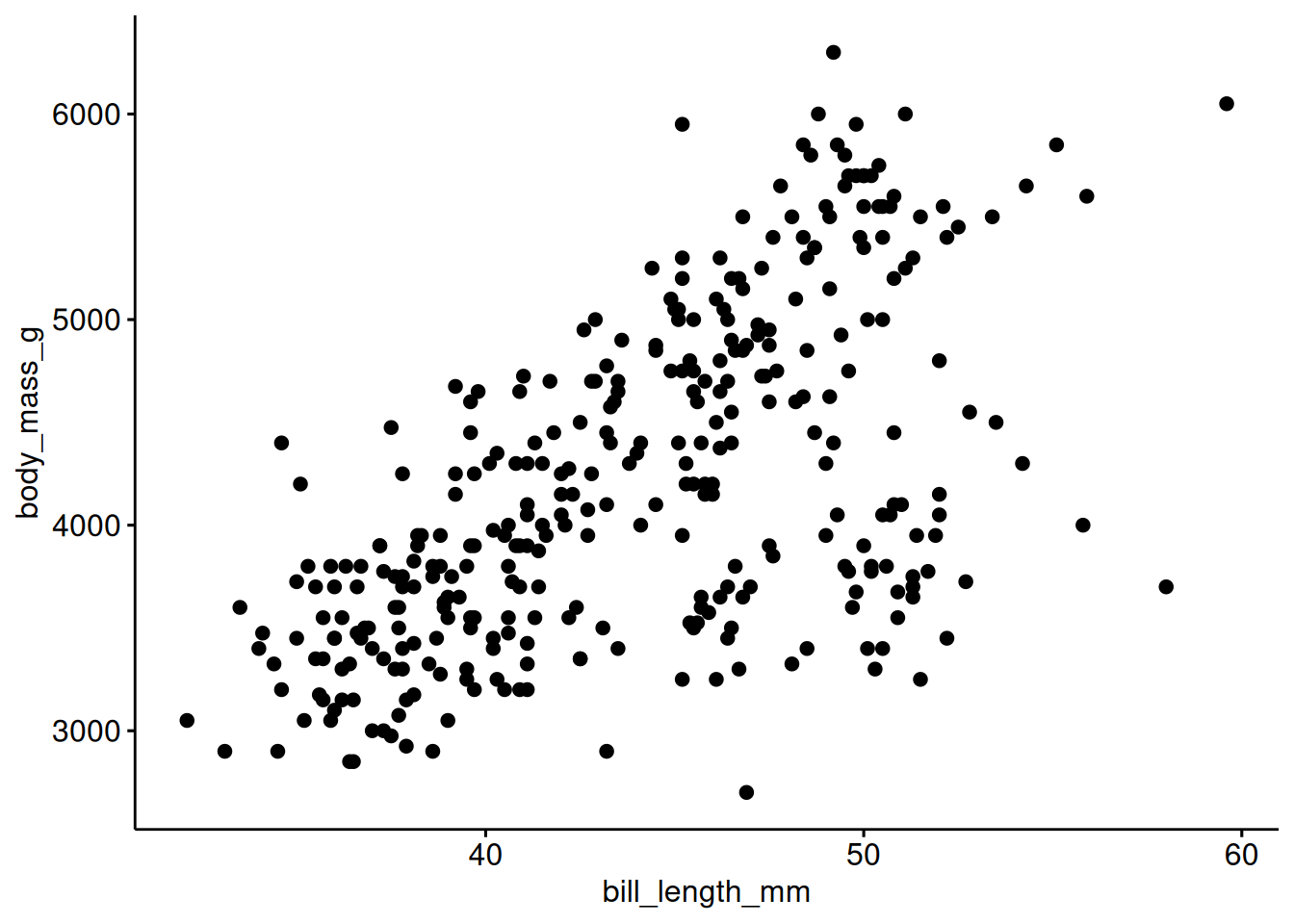 d |> ggscatter(x = "bill_length_mm", "body_mass_g")