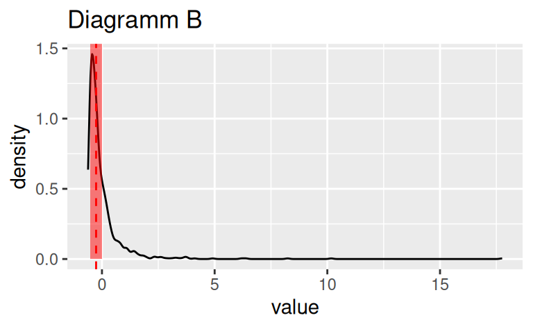 Das Diagramm B zeigt den Median am genauesten.