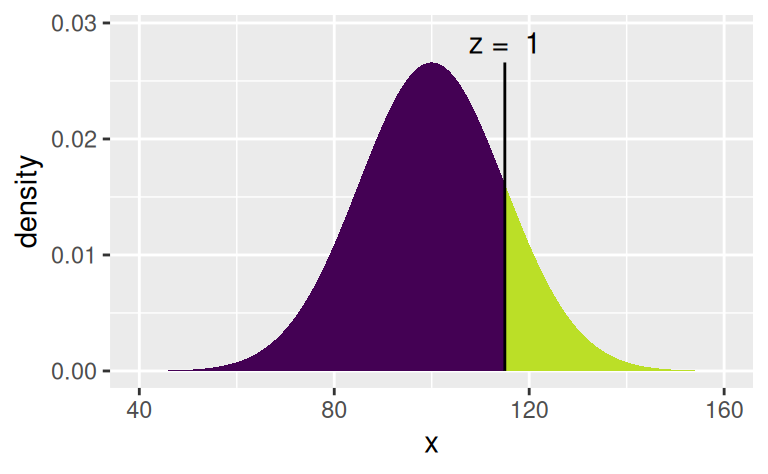Sei $X \sim N(100,15)$, dann ist $Pr(X \ge \bar{x} + \sigma) \approx 0.16$.