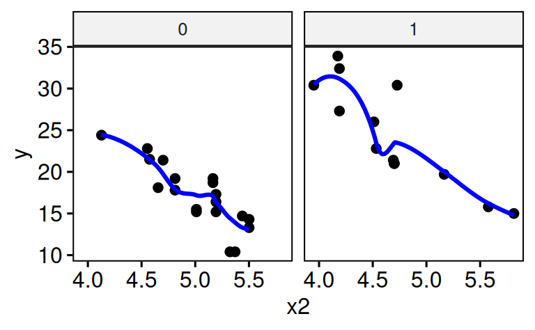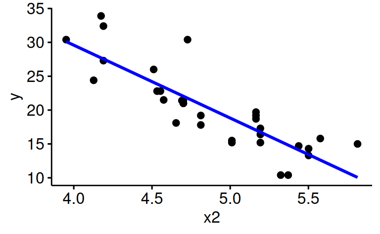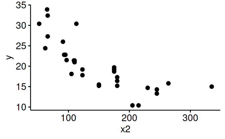 ggscatter(x = "x2", y = "y")