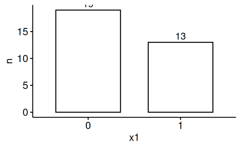 count(x1) ggbarplot(data = d_counted, y = "n", x = "x1", label = TRUE)