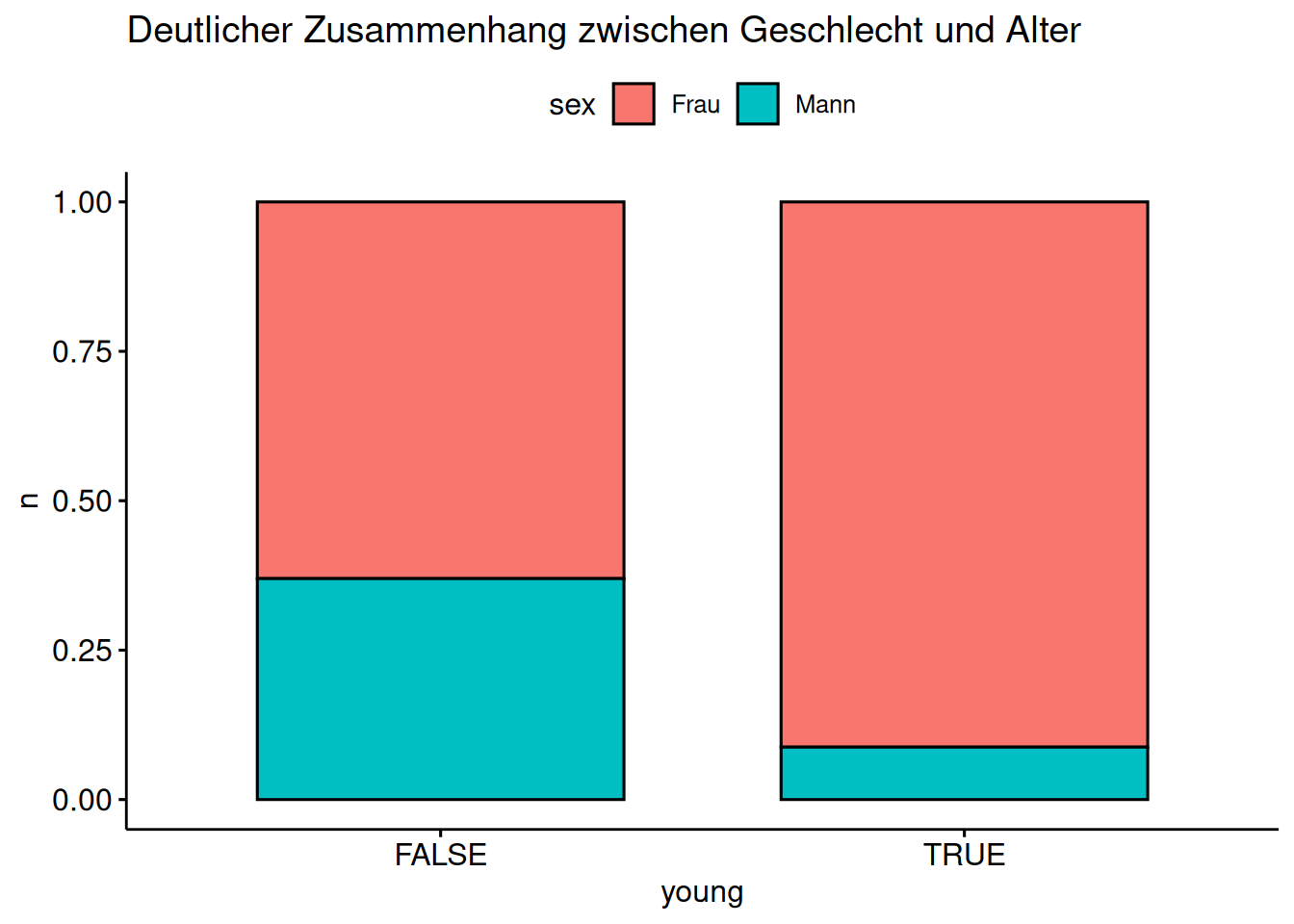labs(title = "Deutlicher Zusammenhang zwischen Geschlecht und Alter")extra |>