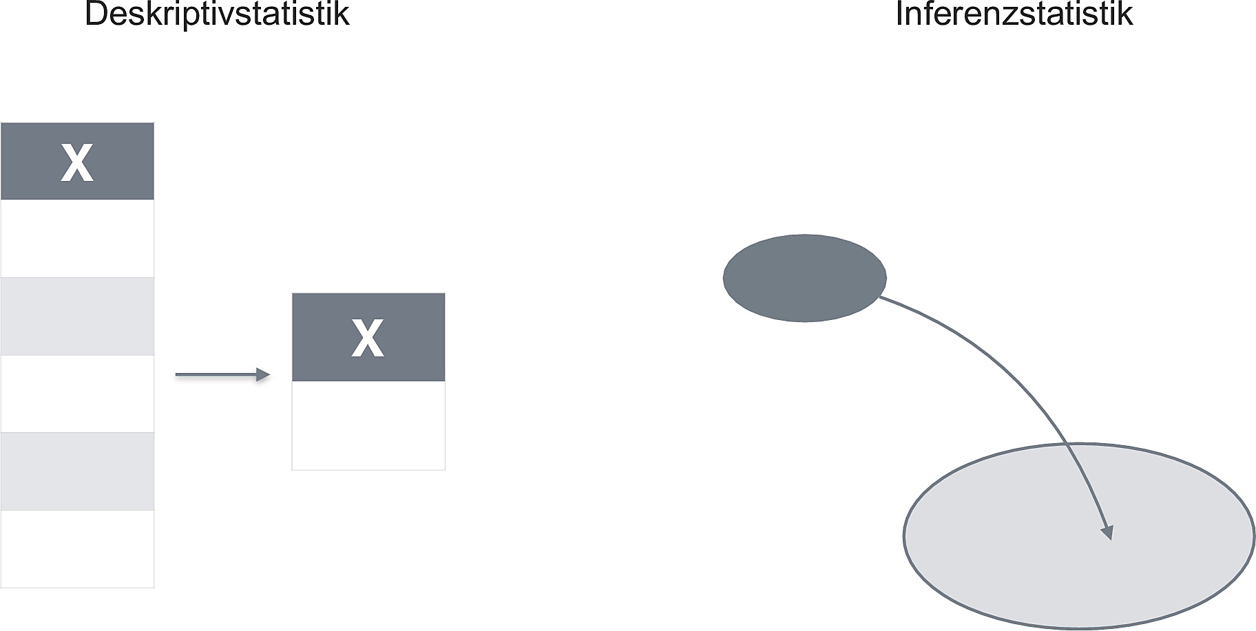 Abbildung 10.3 und Abbildung 10.4 geben einen Überblick zum Unterschied von Deskriptiv- und Inferenzstatistik.