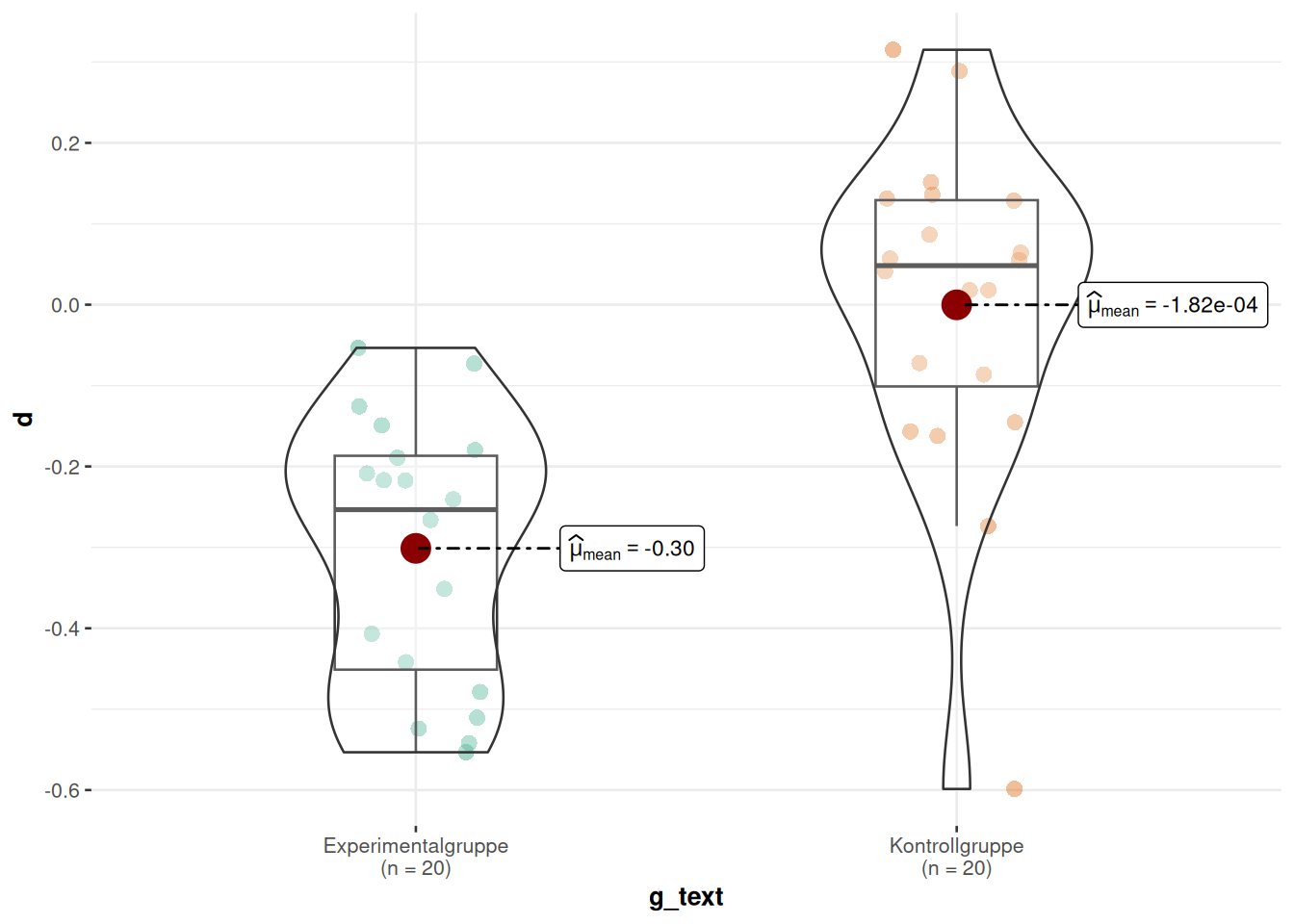 Die deskriptiven Kennwerte sind in Abbildung 12.3 bzw. Abbildung 12.3 visualisiert. Das sieht nicht gerade nach einem großen Effekt aus …1
