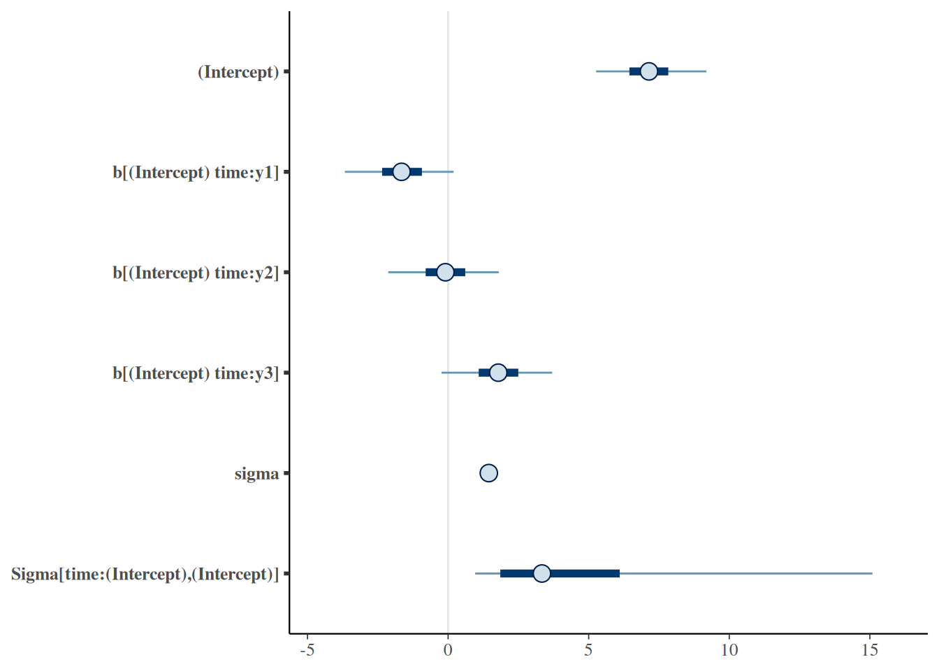 ## b[(Intercept) time:y1] -1.7 1.2 -3.1 -1.7 -0.3