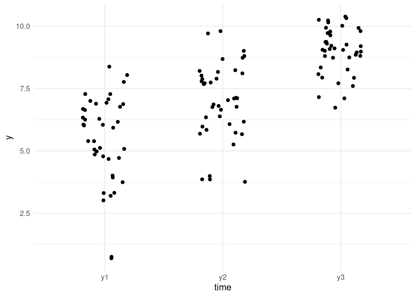 Eine Forscherin hat die Gesundheit (y) von Studentis drei Mal (t1, t2, t3) im Zeitraum eines Semesters untersucht.