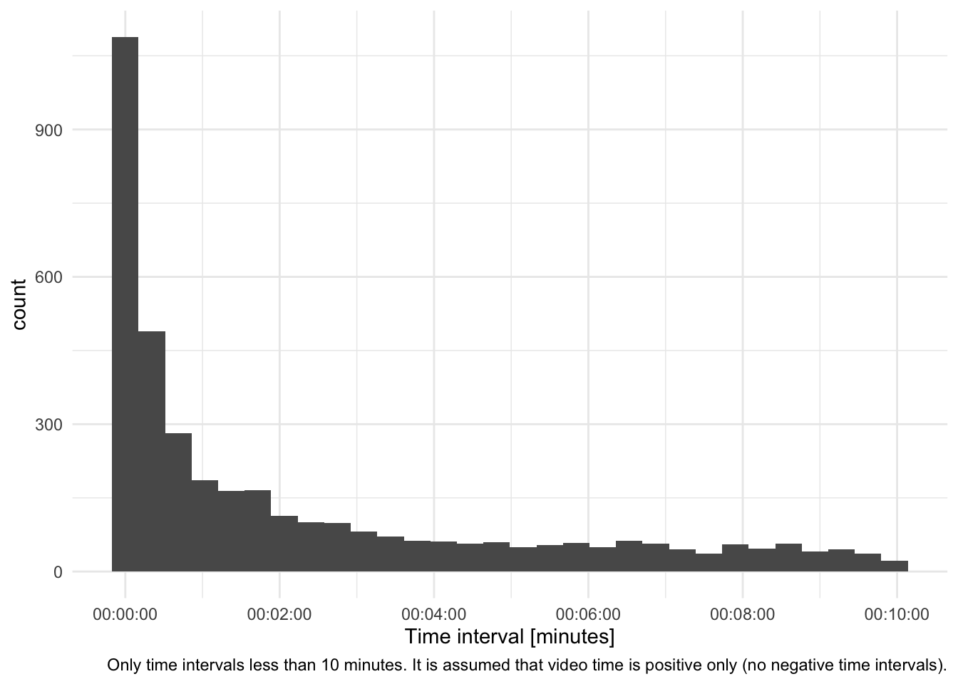 caption = "Only time intervals less than 10 minutes. It is assumed that video time is positive only (no negative time intervals)."