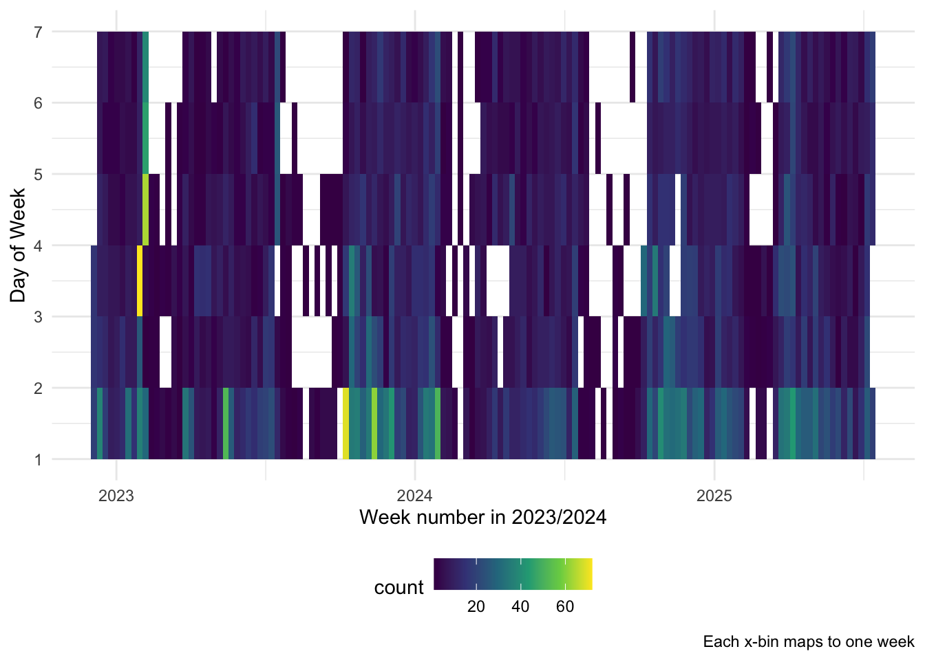 options(lubridate.week.start = 1) # Monday as first day