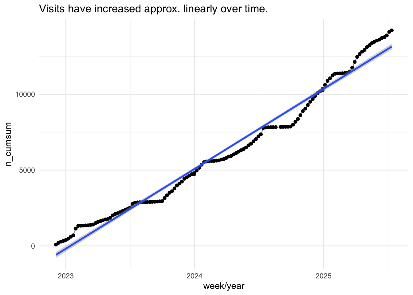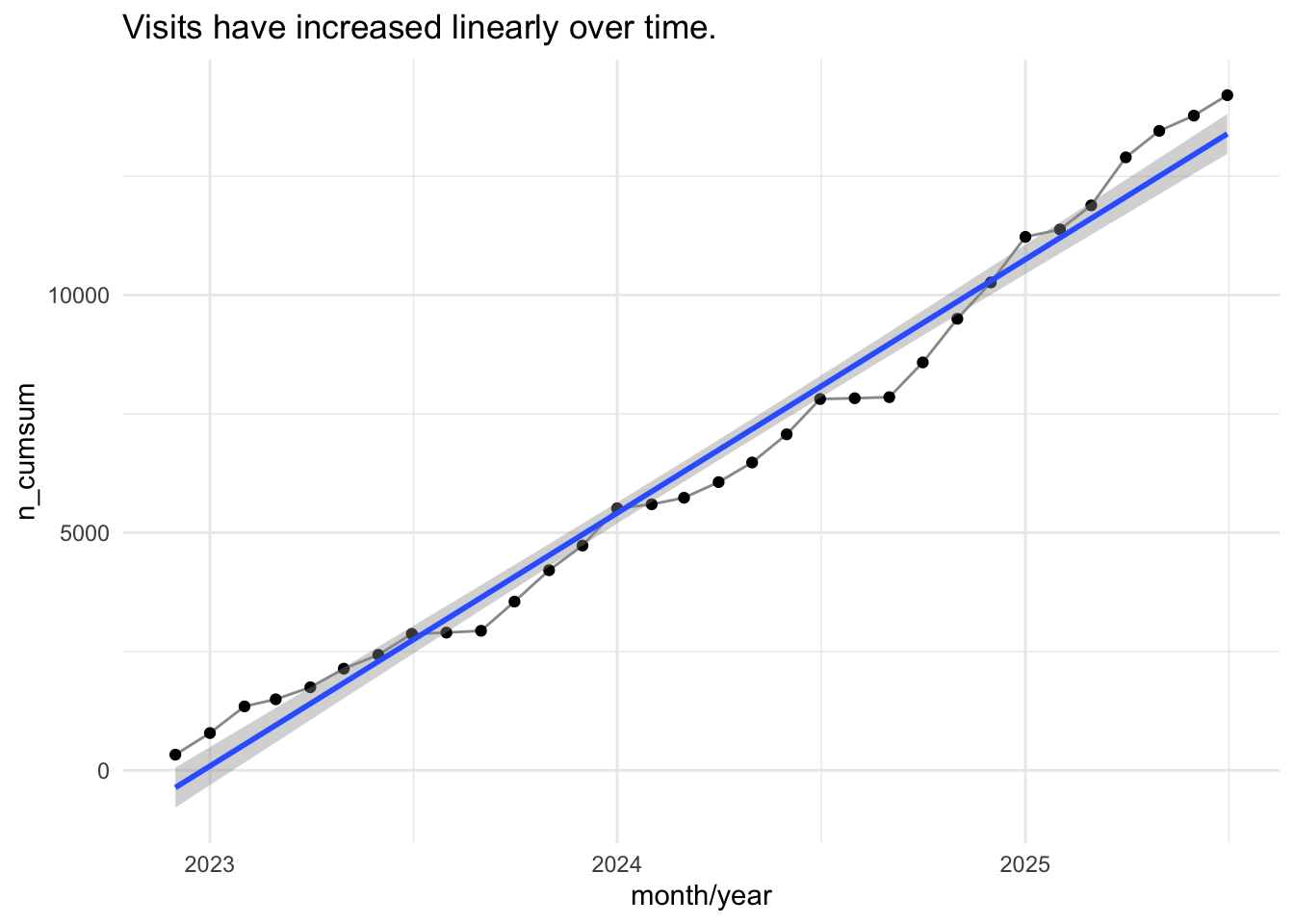 mc_answers_with_timestamps ggplot(aes(x = date, y = n_cumulated)) +