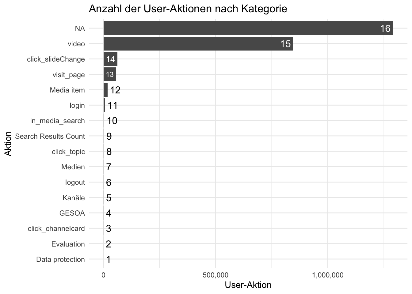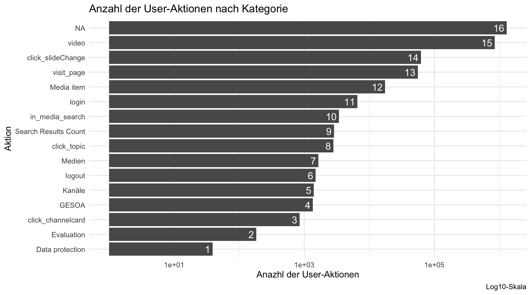 Allerdings hat dieses Vorgehen Schwierigkeiten: Nicht immer folgt auf einem “Play” ein “Pause”. Es ist schwer auszuwerten, wann die Betrachtung eines Videos endet. Daher ist diese Analyse nur vorsichtig zu interpretieren.