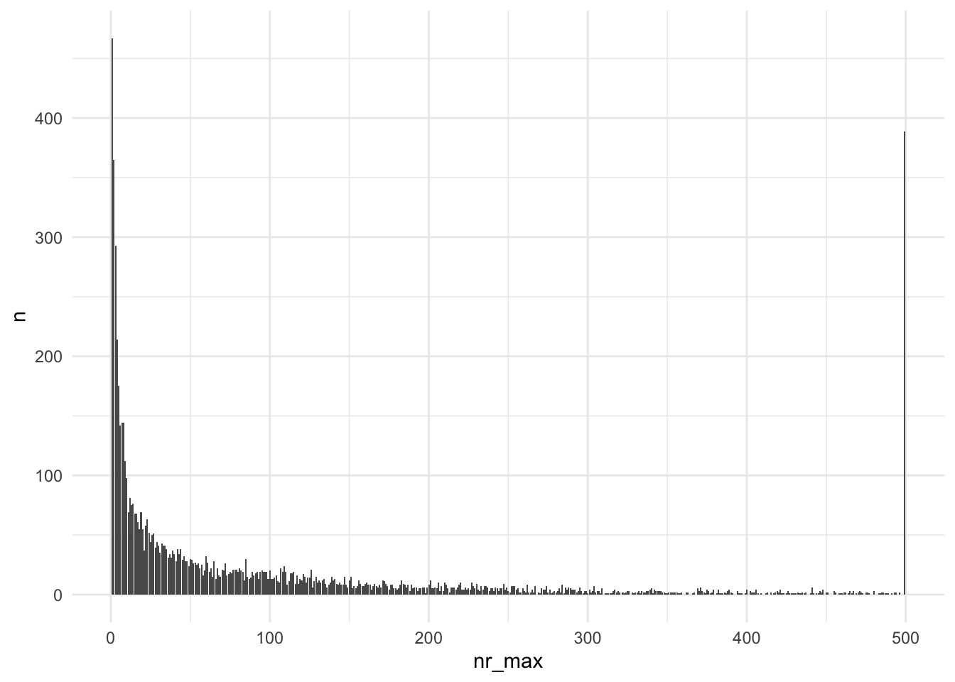 | nr_max | 61.88 | 88.53 | 77.00 | 1.00 | 496.00 | 2.27 | 5.47 | 13,626.00 | 0.00 |