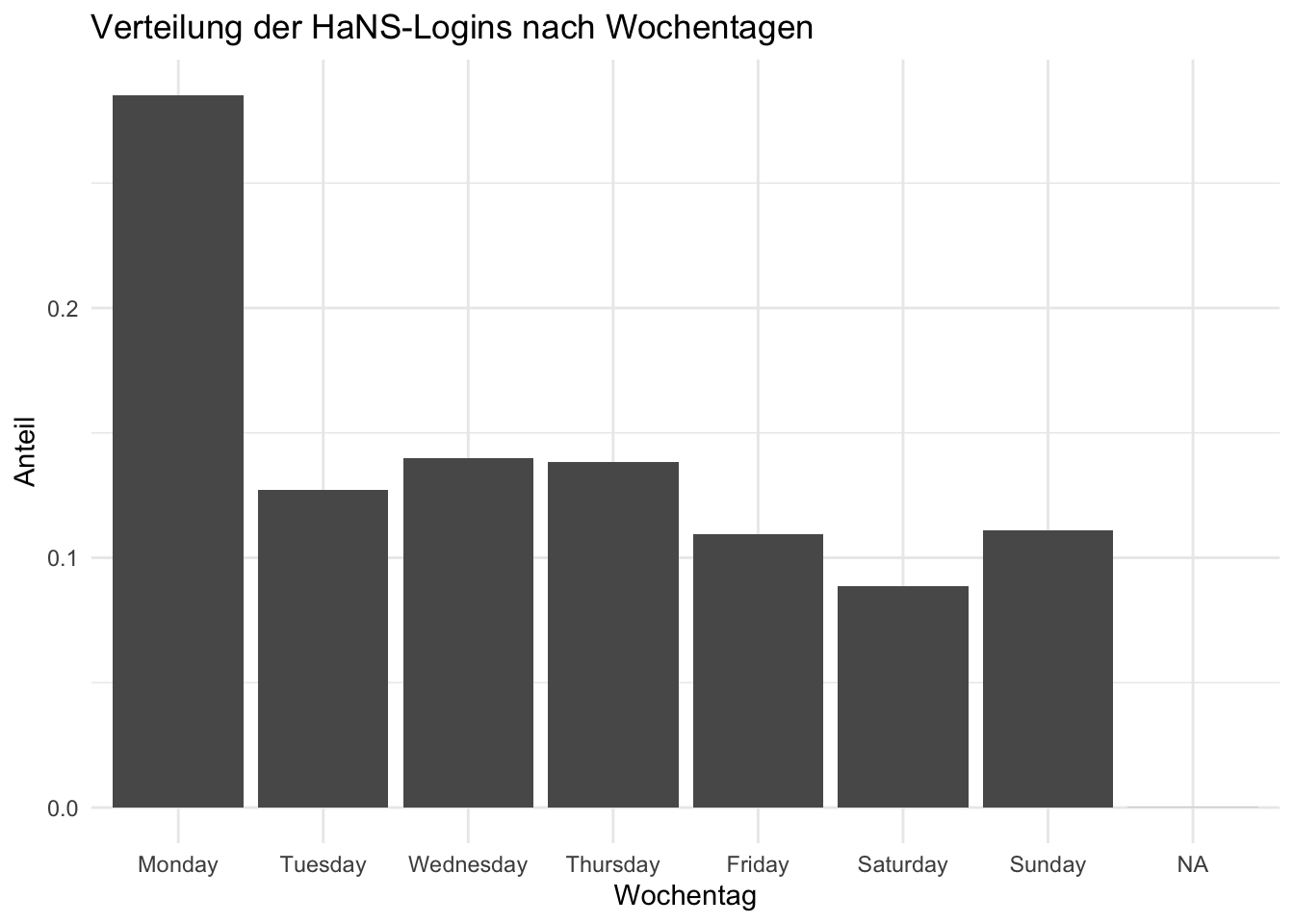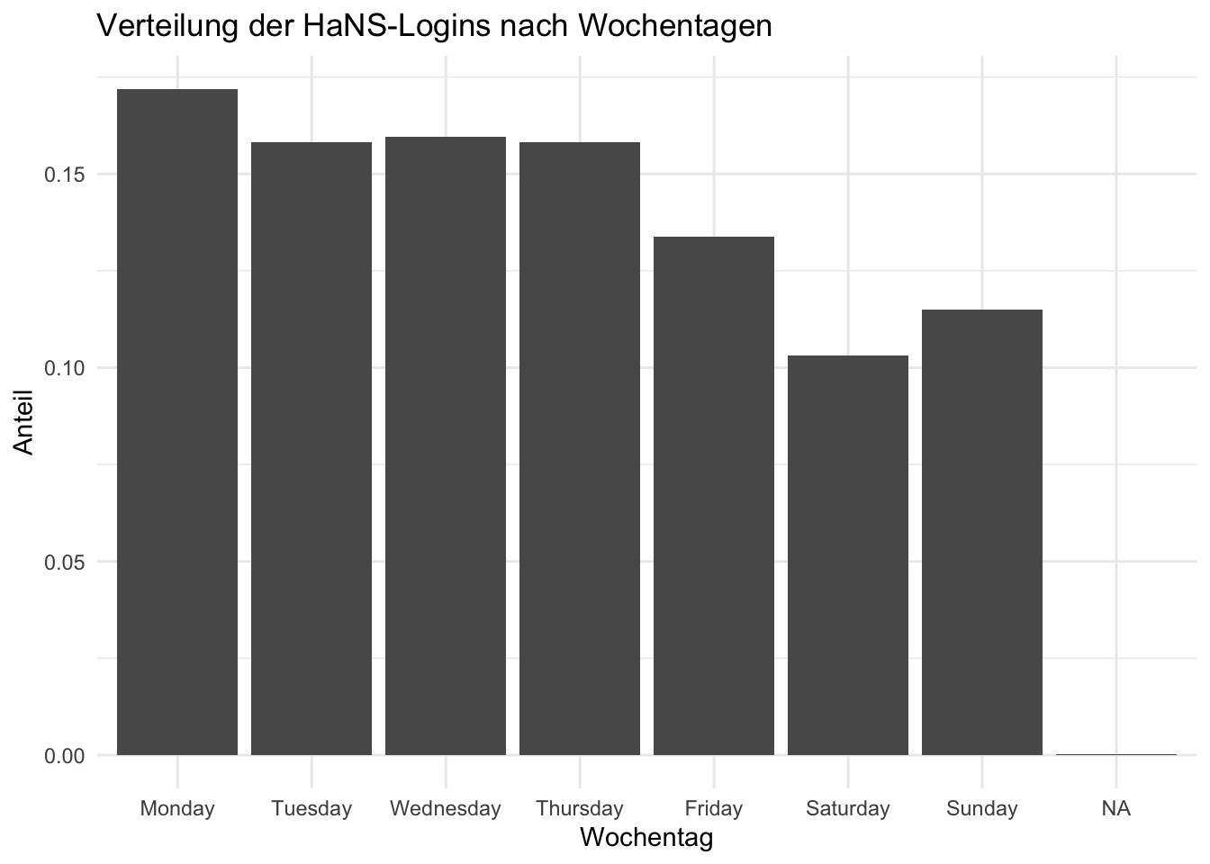 title = "Verteilung der HaNS-Logins nach Wochentagen",