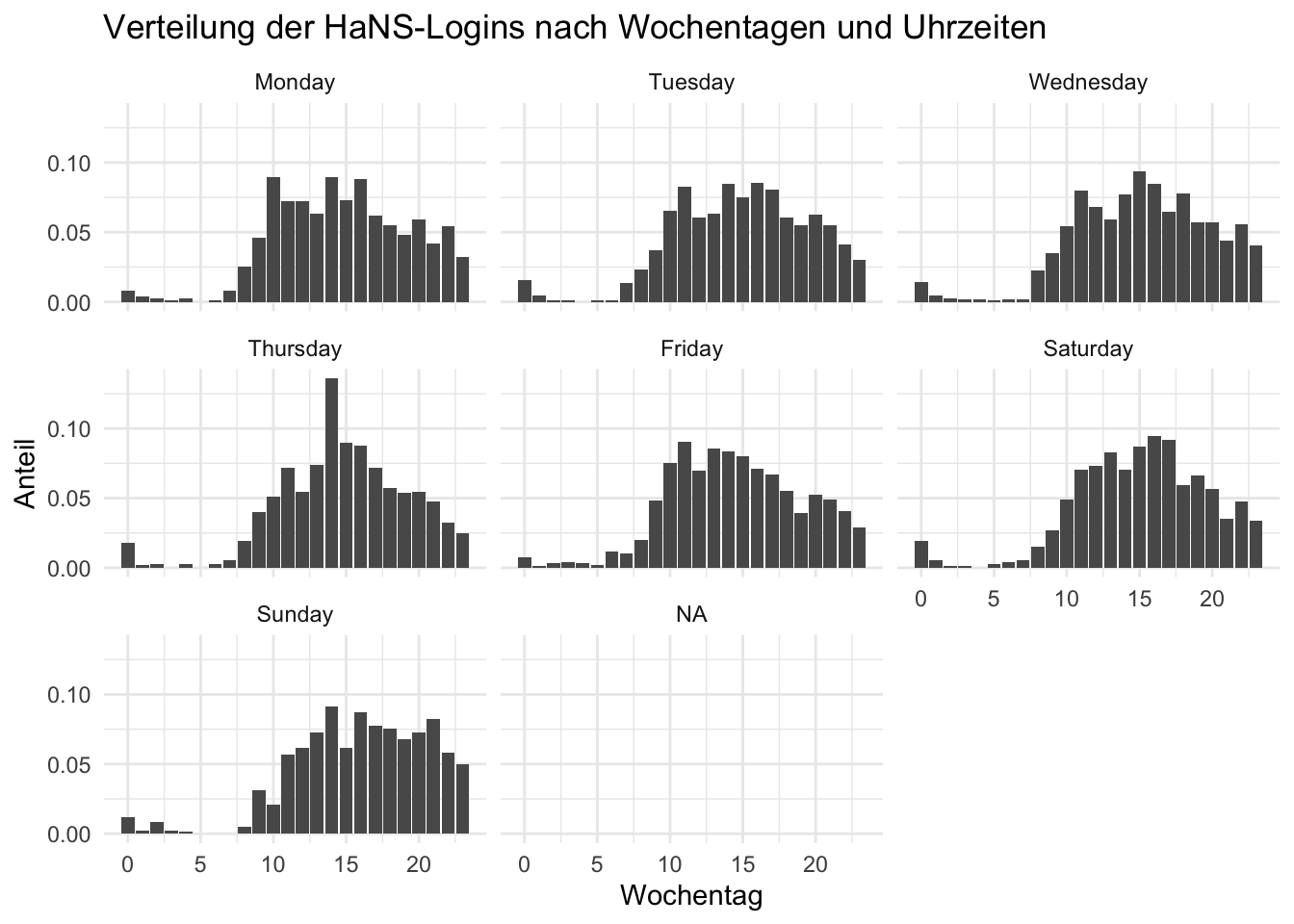 title = "Verteilung der HaNS-Logins nach Wochentagen und Uhrzeiten",