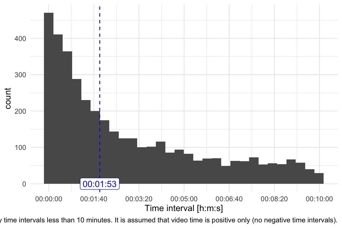 caption = "Only time intervals less than 10 minutes. It is assumed that video time is positive only (no negative time intervals)."