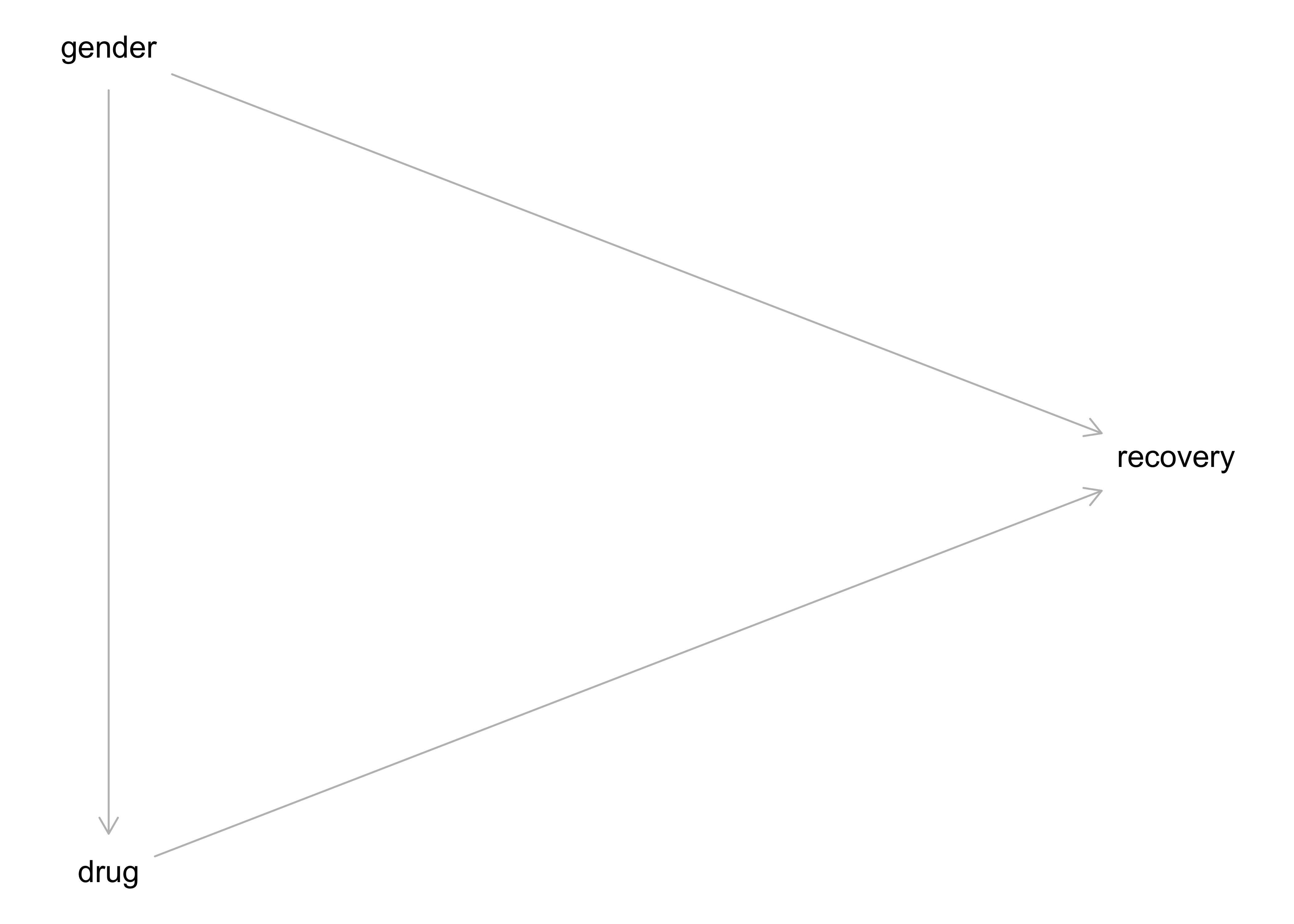 Die Daten stammen aus einer (fiktiven) klinischen Studie, \(n=700\), hoher Qualität (Beobachtungsstudie). Bei Männern scheint das Medikament zu helfen; bei Frauen auch. Aber insgesamt (Summe von Frauen und Männern) nicht?! Was sollen wir den Arzt raten? Soll er das Medikament verschreiben? Vielleicht nur dann, wenn er das Geschlecht kennt (Pearl et al., 2016)?