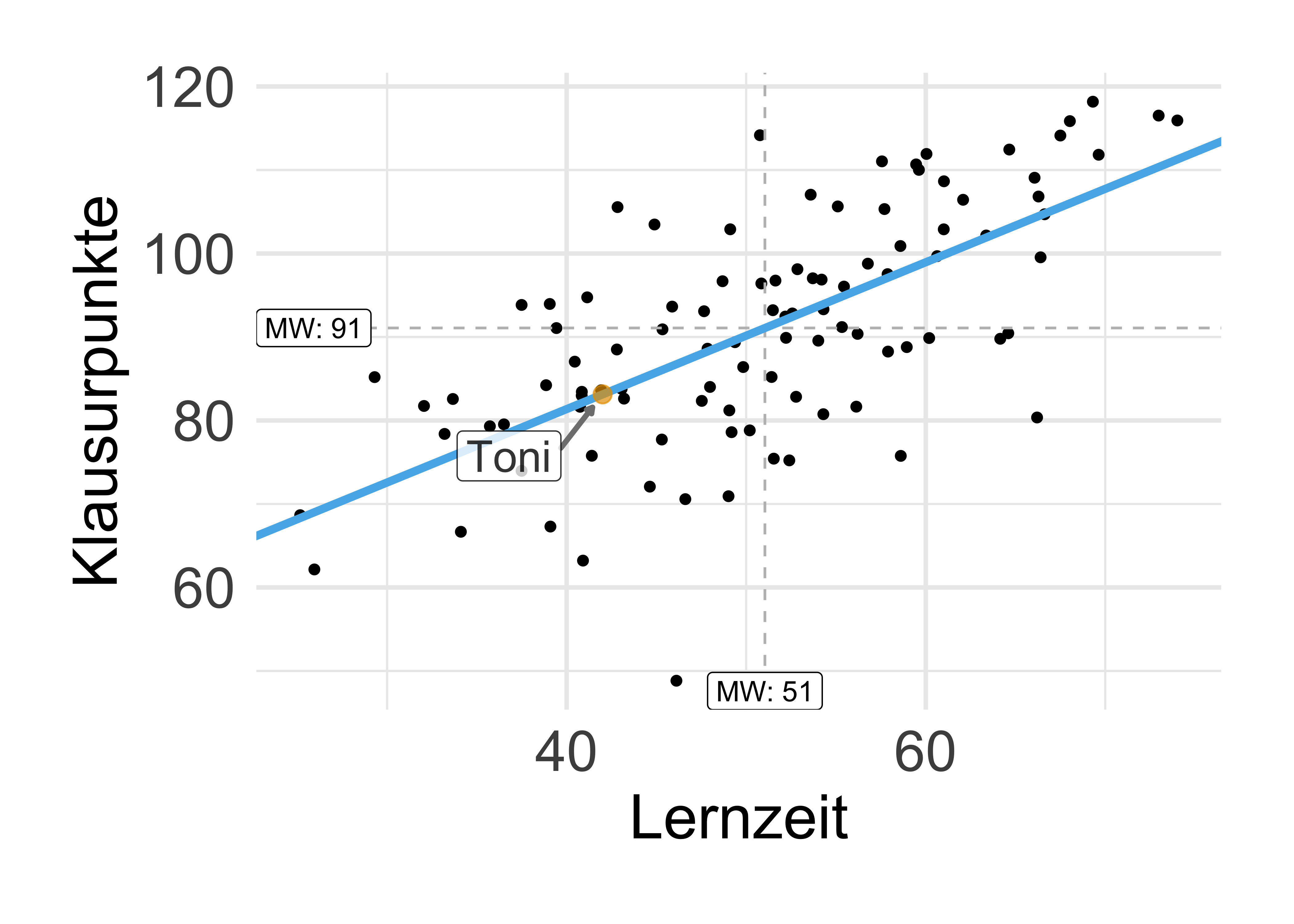 - Vorhersagen: Wenn eine Person, Mr. X, 100 Stunden auf die Statistikklausur lernen, welche Note kann diese Person dann erwarten?
