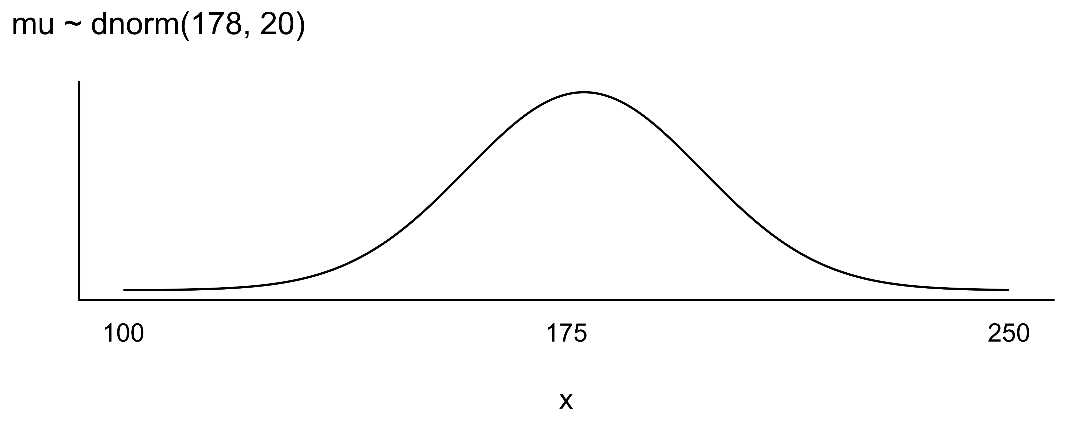 \[\mu \sim \mathcal{N}(178, 20) \tag{8.1}\]