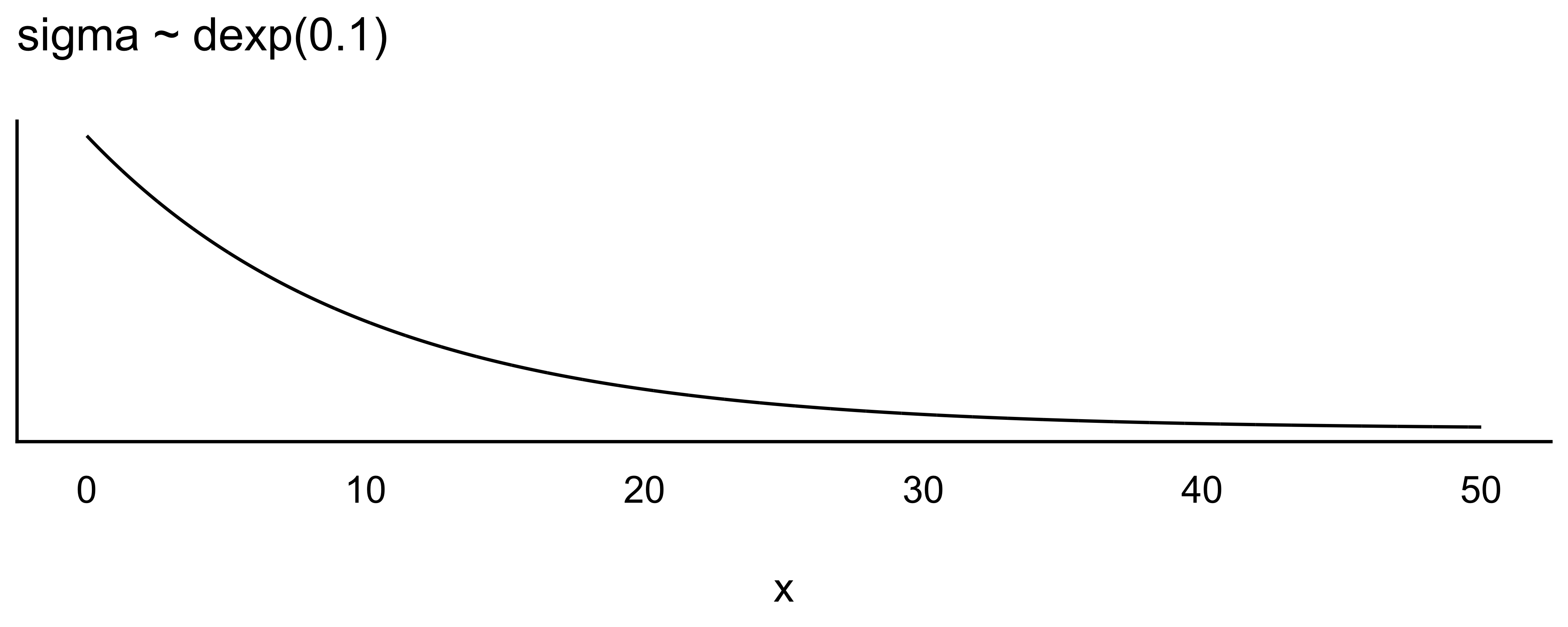 Prior für den Parameter \(\sigma\): \(\sigma \sim \mathcal{E}(0, 0.1)\)