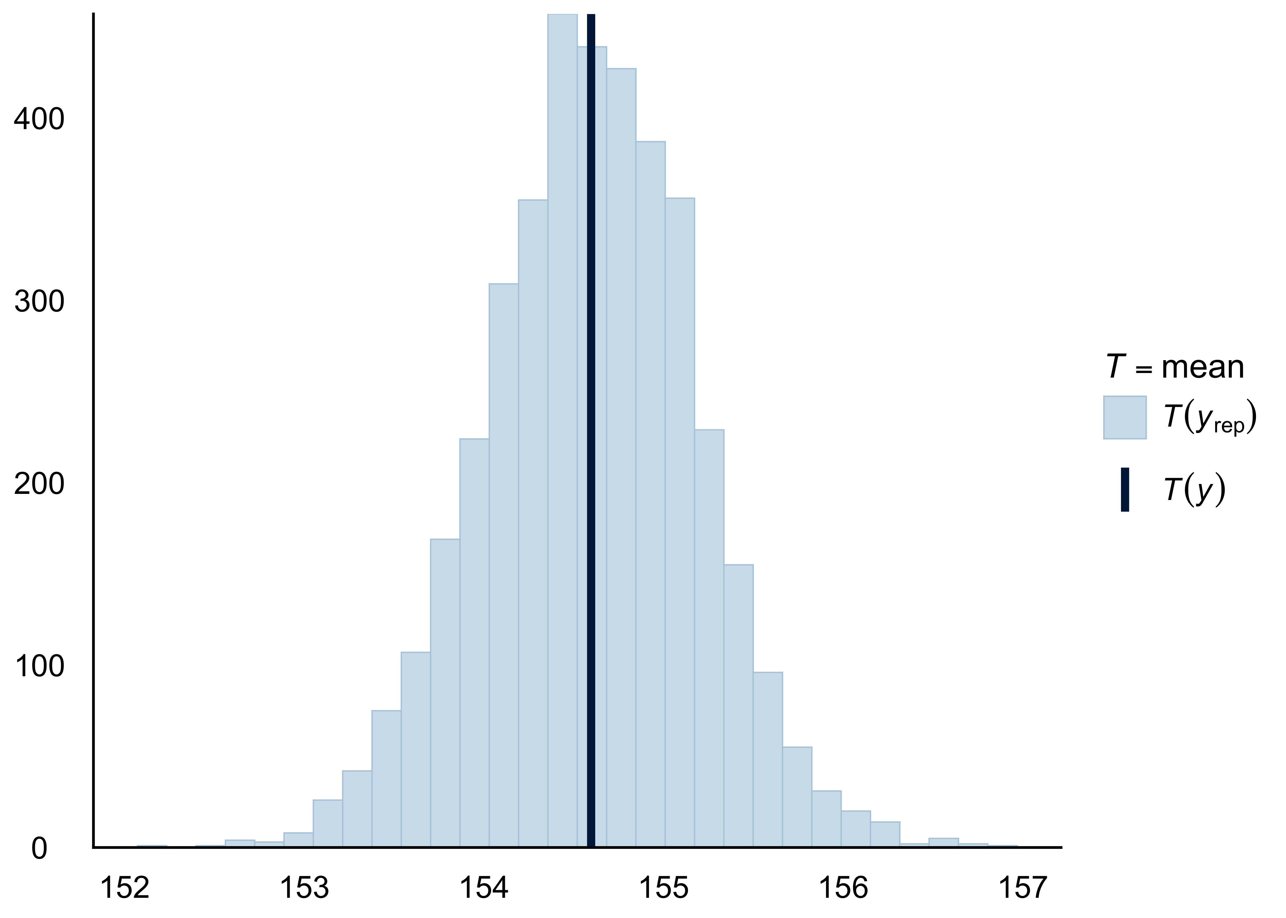 bezeichnet. Wir könnten jetzt also für jede Zeile eine Normalverteilung berechnen. Und daraus zufällig eine Zahl ziehen. Damit hätten wir dann unsere Verteilung von Körpergrößen laut Modell. Diese Verteilung nennt man auch Posterior-Prädiktiv-Verteilung. Prädiktiv daher, weil sie die Werte der Körpergrößen “vorhersagt”.