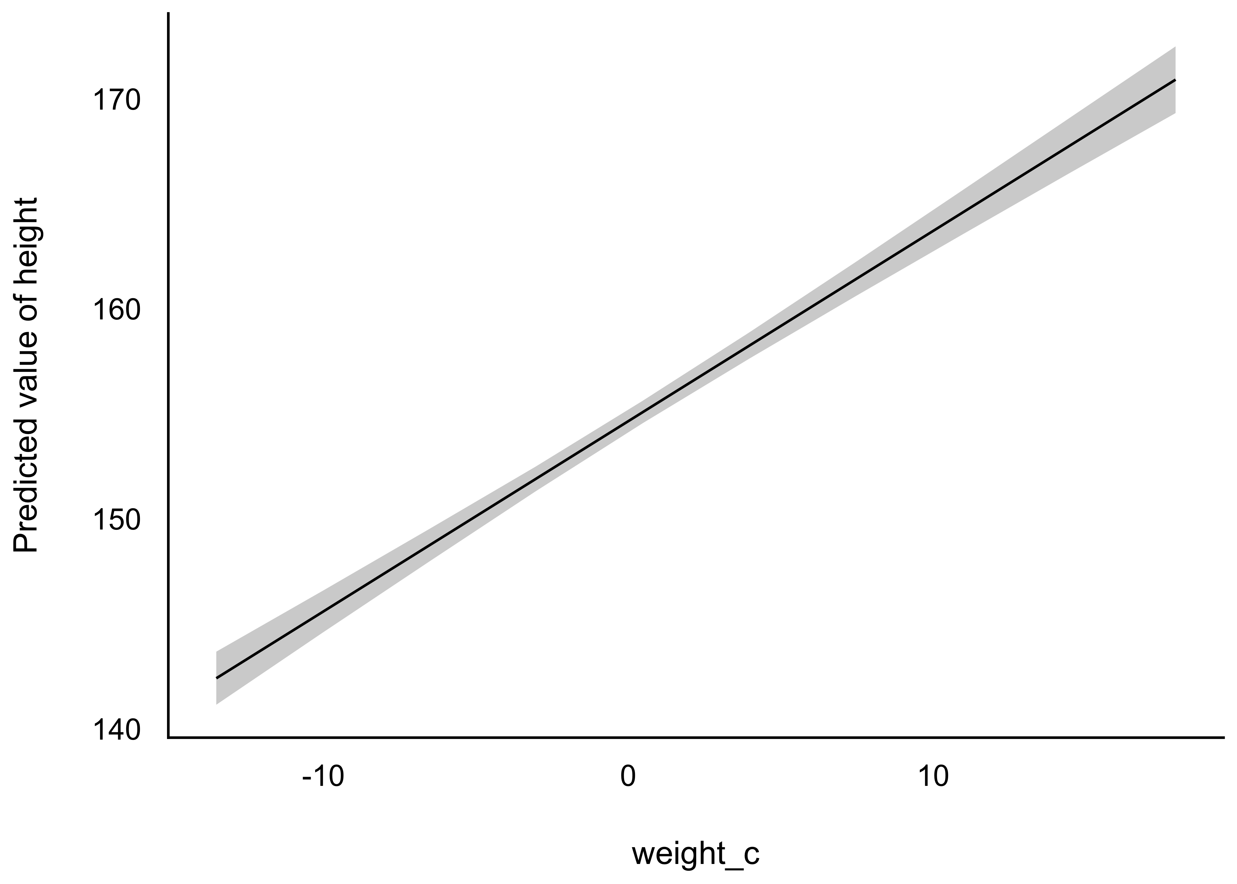) zentriert hat, ist der Achsenabschnitt, \(\beta_0\), einfacher zu verstehen. In einem Modell mit zentriertem Prädiktor (weight