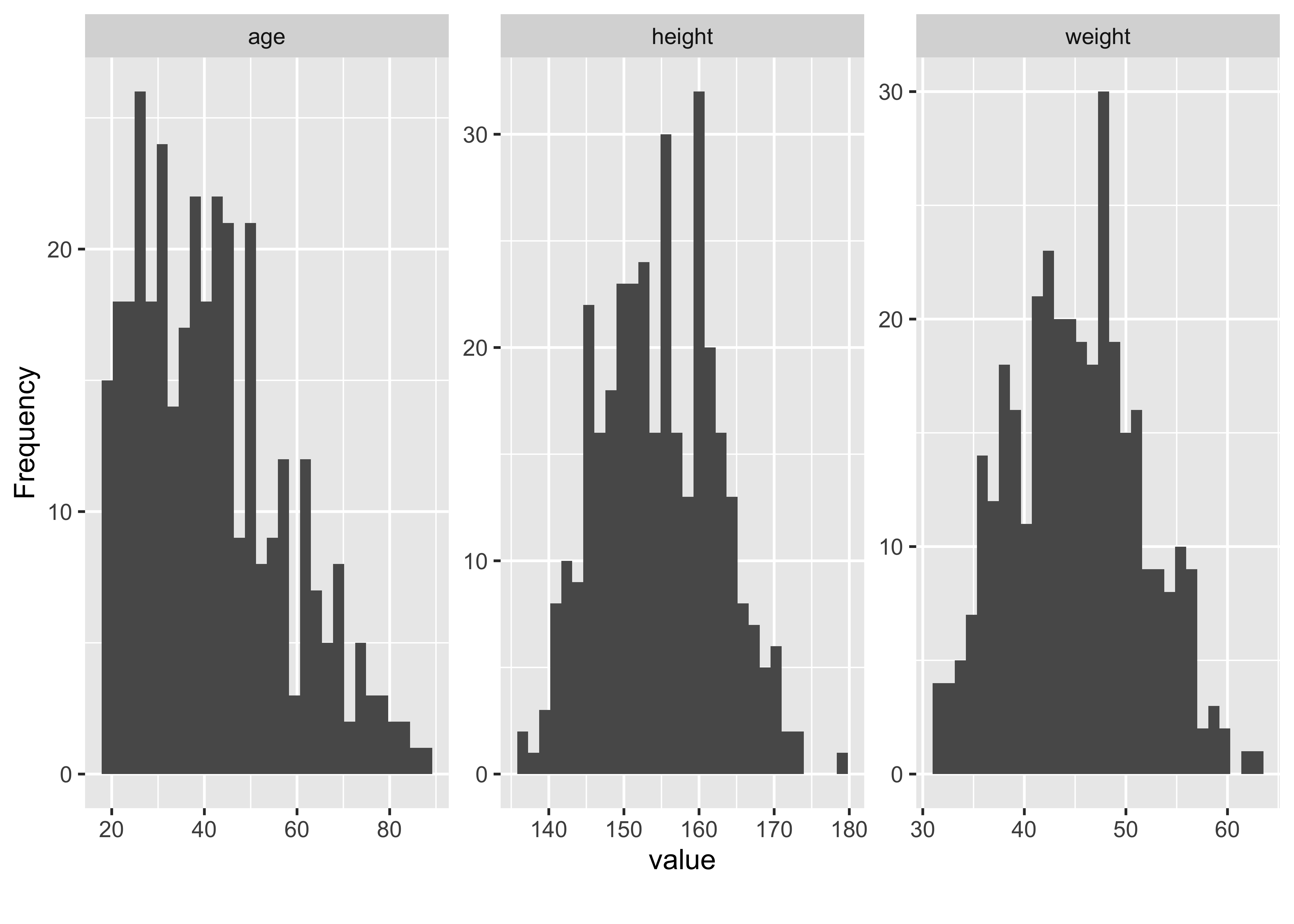 weight | 45.05 | 6.46 | 9.14 | (31.52, 62.99) | 0.14 | -0.53 | 346 | 0 |