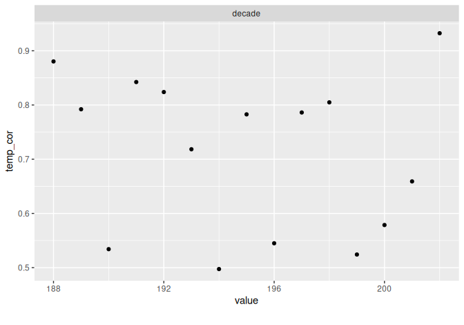 ggplot(aes(x = decade, y = temp_cor)) +