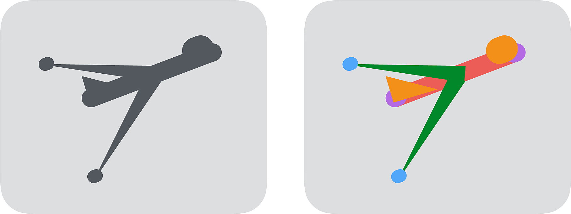 Es gibt einen (einfachen) Trick, wie man umfangreiche Datenaufbereitung elegant geregelt kriegt. Der Trick besteht darin, komplexe Operationen in mehrere einfache Teilschritte zu zergliedern. (In gewisser Weise besteht das Wesen einer Analyse eben darin: die Zerlegung eines Gegenstands in seine Bestandteile.) Man könnte vom “Lego-Prinzip” sprechen, s. Abbildung 4.2. Im linken Teil von Abbildung 4.2 sieht man ein (recht) komplexes Gebilde. Zerlegt man es aber in seine Einzelteile, so sind es deutlich einfachere geometrische Objekte wie Dreiecke oder Kreise (rechter Teil des Diagramms). Damit Sie es selber einfach machen können, müssen Sie selber Hand anlegen. Importieren Sie daher den Datensatz mariokart, s. Kapitel 3.7.3.