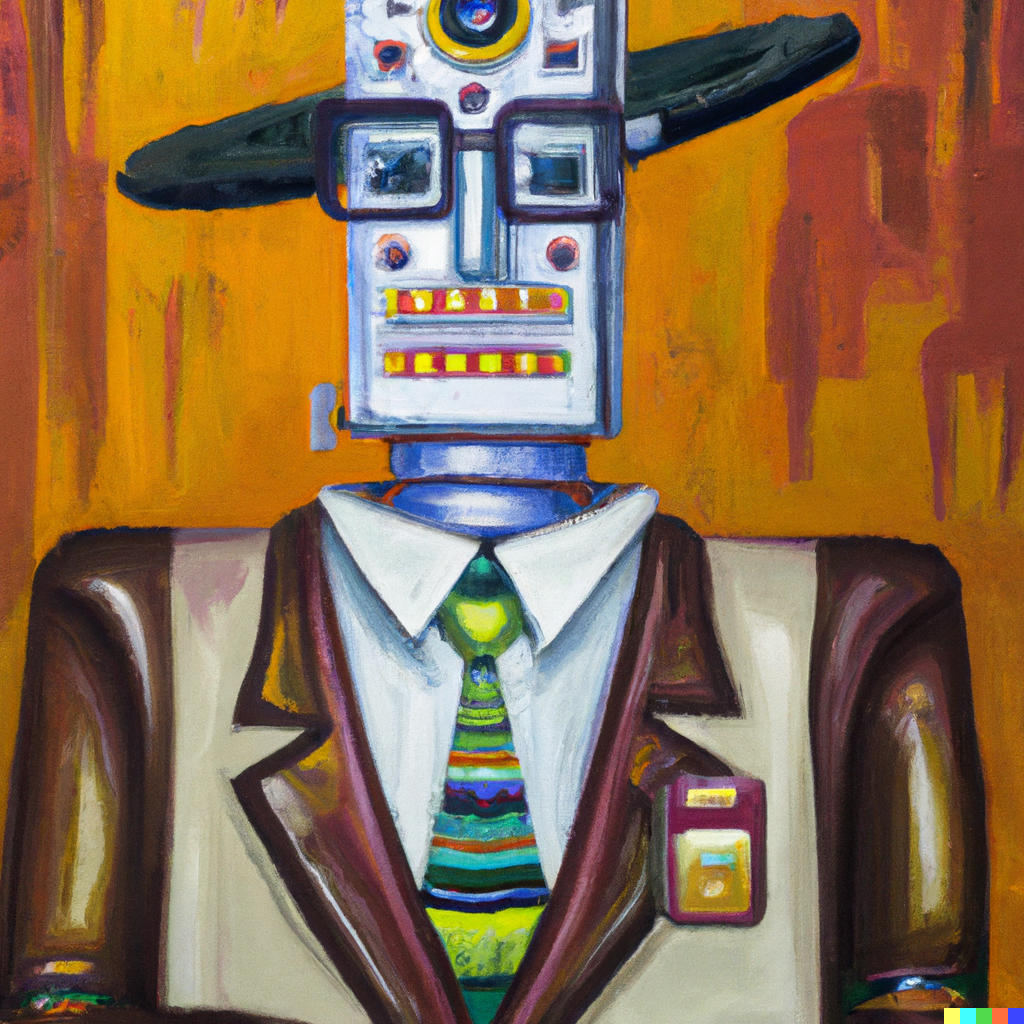 👨🏫 I’d like a mixture between robot und professor, in oil painting