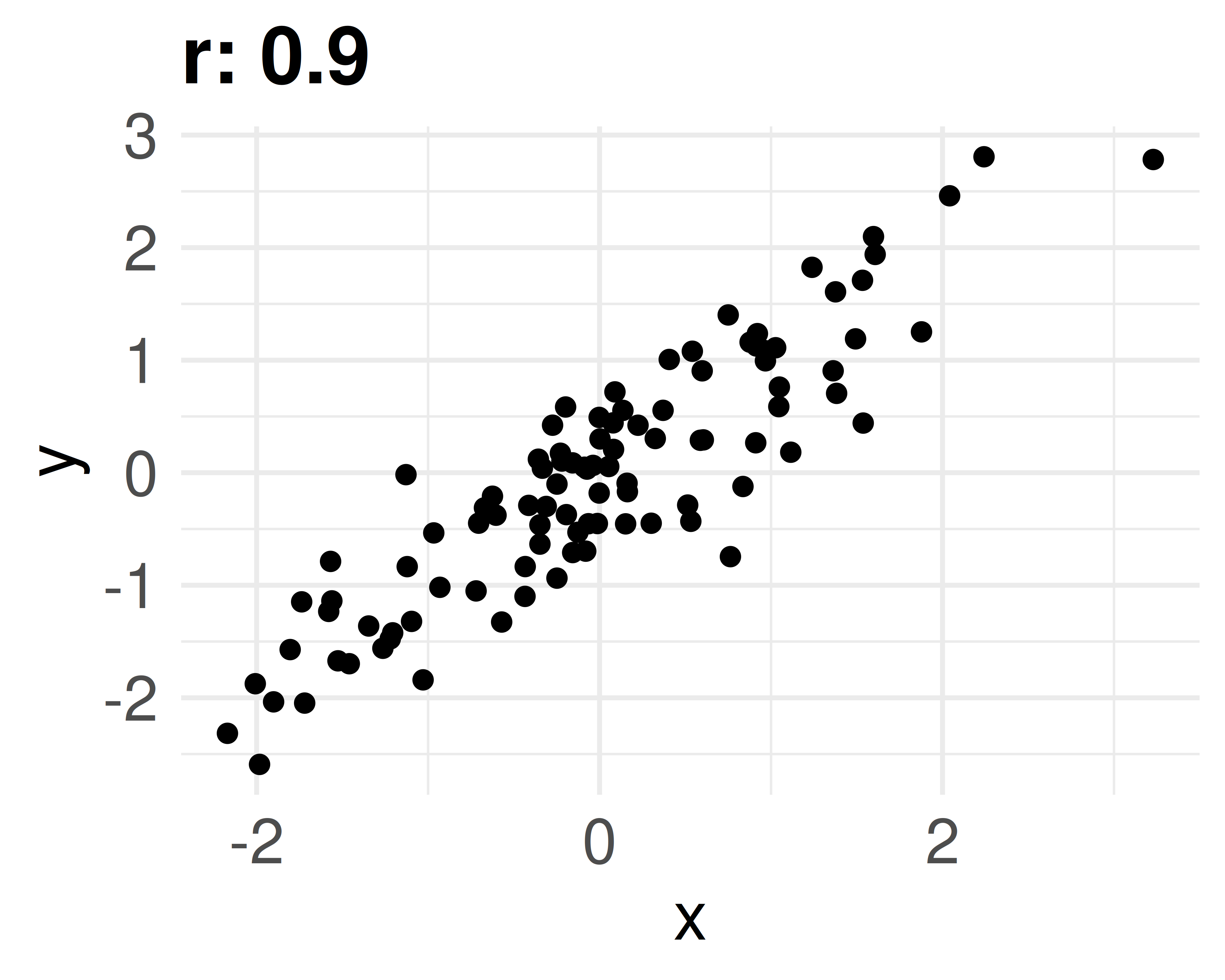 Übungsaufgabe 8.3 (Interaktive Visualisierung der Korrelation) Auf der Seite von RPsychologist3 findet sich eine ansprechende dynamische Visualisierung der Korrelation. Nutzen Sie sie, um Ihr Gefühl für die Stärke des Korrelationskoeffizienten zu entwickeln. \(\square\)