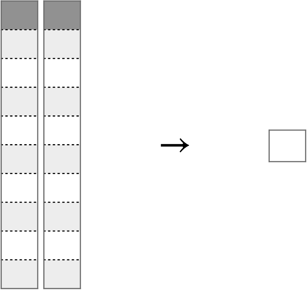 In Kapitel 6 haben wir gelernt, dass das Wesen eines Punktmodells als Zusammenfassung einer Spalte (eines Vektors) zu einer einzelnen Zahl, zu einem “Punkt” sozusagen, zusammengefasst werden kann. In diesem Kapitel fassen wir zwei Spalten zusammen, wieder zu einer Zahl, s. Abbildung 8.1. Während wir in Kapitel 6 eine Variable mit Hilfe eines Lagemaßes beschrieben (bzw. dargestellt, zusammengefasst, modelliert) haben, tun wir hier das Gleiche für zwei Variablen. Beschreibt man aber zwei Variablen, so geht es um die Frage, was die beiden Variablen miteinander zu tun haben: Wie die beiden Variablen voneinander (statistisch) abhängen bzw. miteinander (in welcher Form auch immer) zusammenhängen. Wir begrenzen uns auf metrische Variablen.